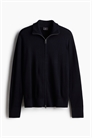 Вязаный кардиган на молнии с зауженным кроем из мягкой ткани. Круглый вырез с воротником и универсальная двухсторонняя застежка-молния.
