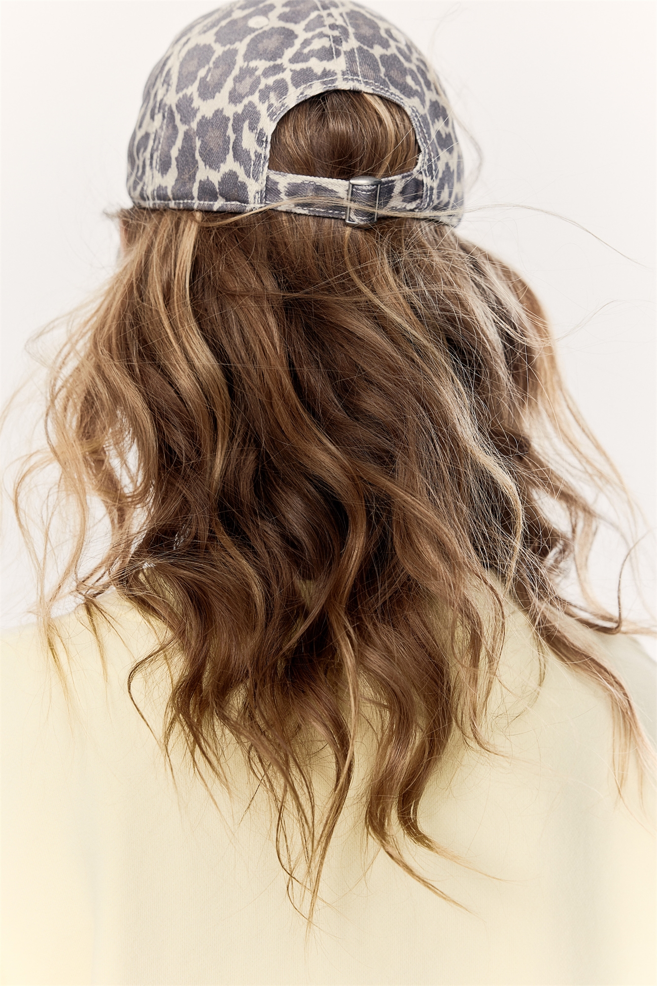 Кепка из хлопковой саржи с вышитыми люверсами и регулируемым ремешком с металлическим регулятором на затылке. Тканый потник.