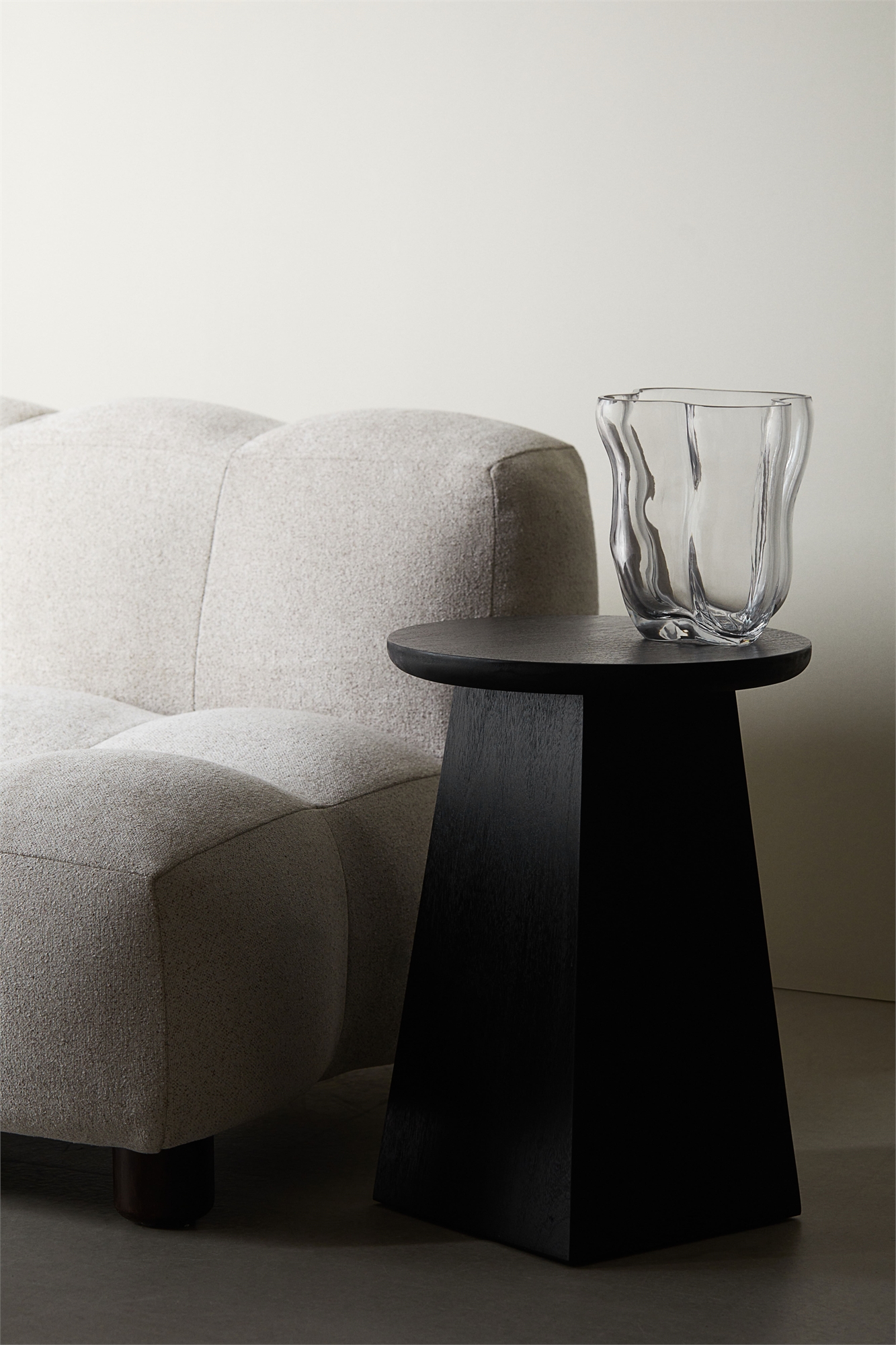 Небольшой стильный приставной столик из МДФ. Диаметр столешницы 35 см. Высота 45 см. Основание столика 40x40 см.
