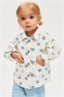 Куртка из хлопкового денима с вышивкой. Отложной воротник, накладные передние карманы и кнопки спереди и на манжетах. Низко опущенные плечи и рукава-баллон.