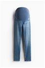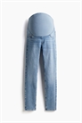Джинсы из эластичного денима с зауженной посадкой от талии до подола. Фальшивые передние карманы, настоящие задние карманы, фальшивая ширинка и широкая панель из джерси на талии для лучшей посадки на животе.
