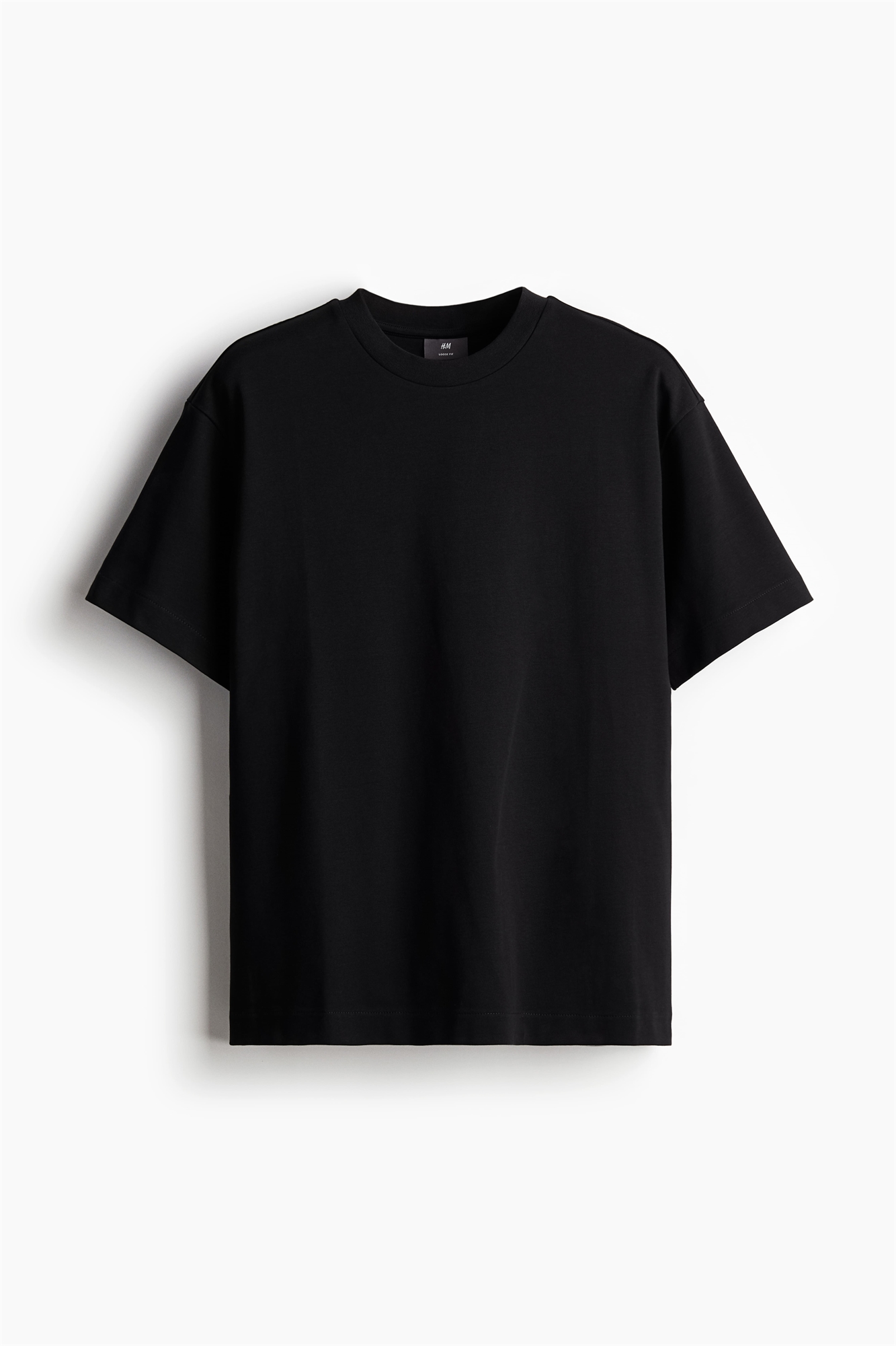 Футболка из плотного хлопкового джерси с круглым вырезом в рубчик, спущенными плечами и прямым покроем. Свободный крой для объемного, но не чрезмерно большого силуэта.