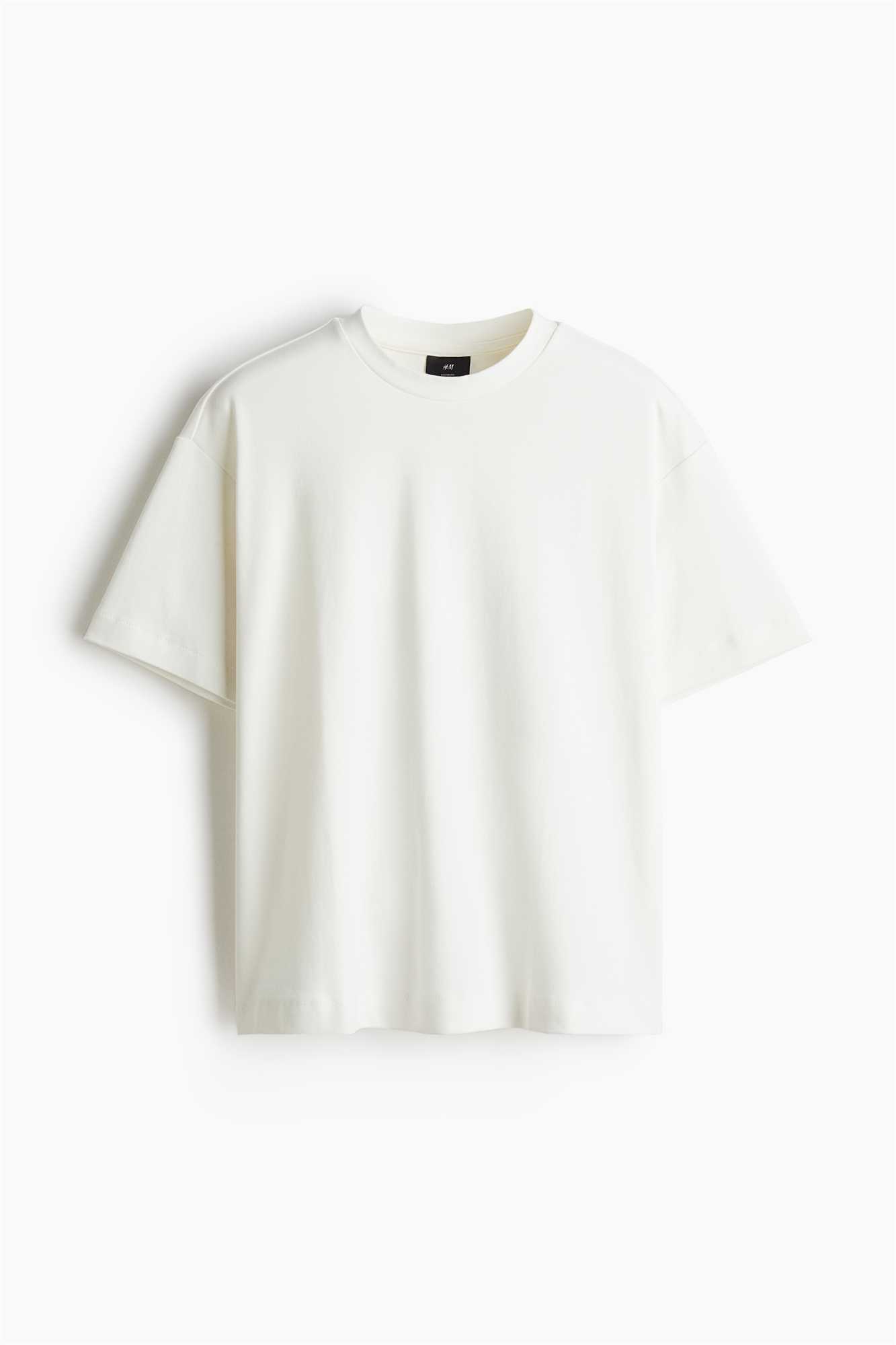 Футболка из плотного хлопкового джерси с круглым вырезом в рубчик, спущенными плечами и прямым покроем. Свободный крой для объемного, но не чрезмерно большого силуэта.