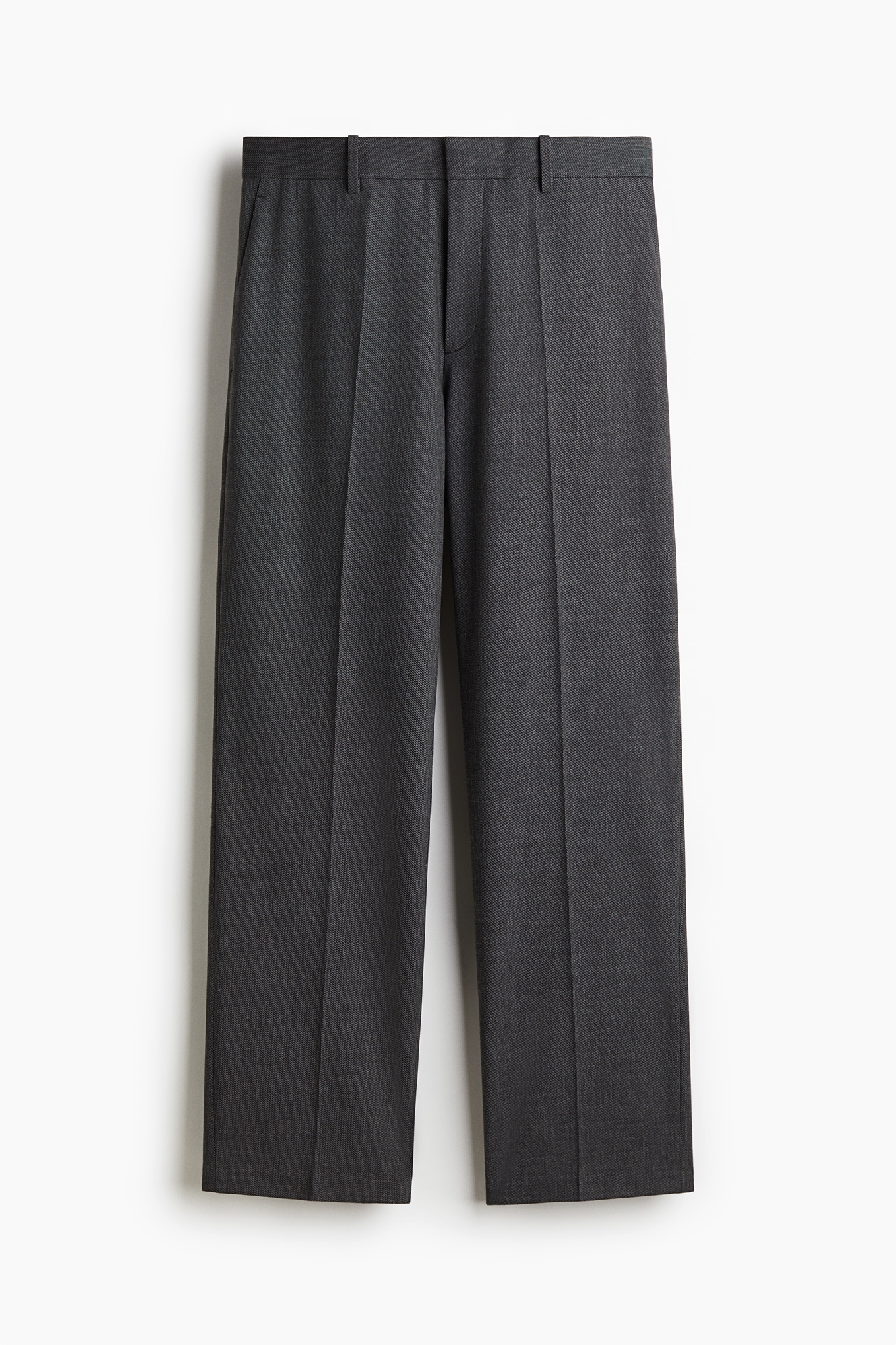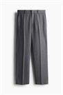 Костюмные брюки из шерстяной смеси с ширинкой на молнии и поясом с застежкой на пуговицу и крючок. Боковые карманы, втачные задние карманы и ножки со складками. Свободный крой для непринужденного, но не чрезмерного силуэта.
