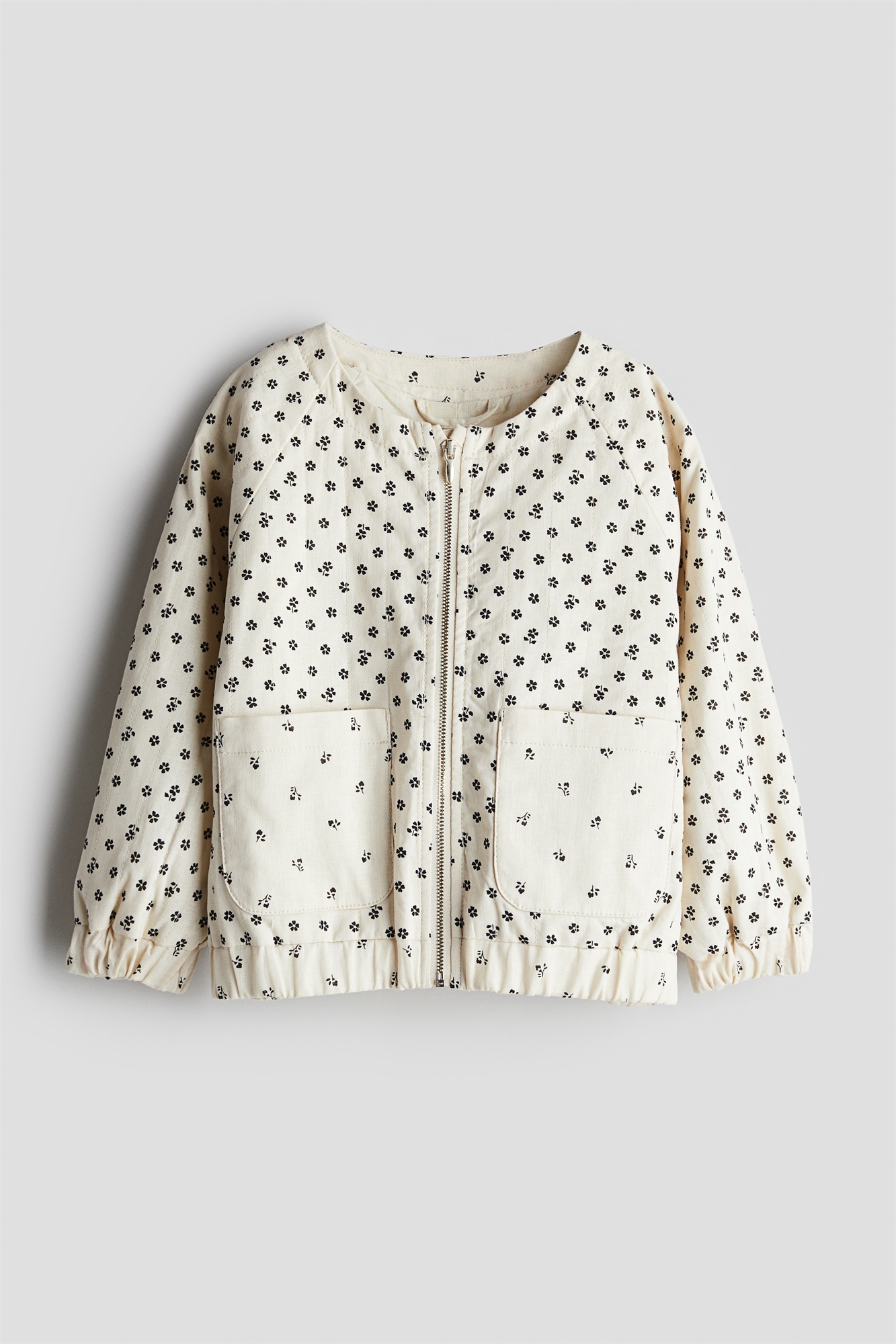Куртка с легкой набивкой из льна и хлопка с принтом по всей поверхности. Свободный крой с круглым вырезом, застежка-молния спереди, накладные передние карманы и рукава реглан. Эластичные манжеты и подол. Хлопковая подкладка.