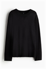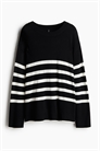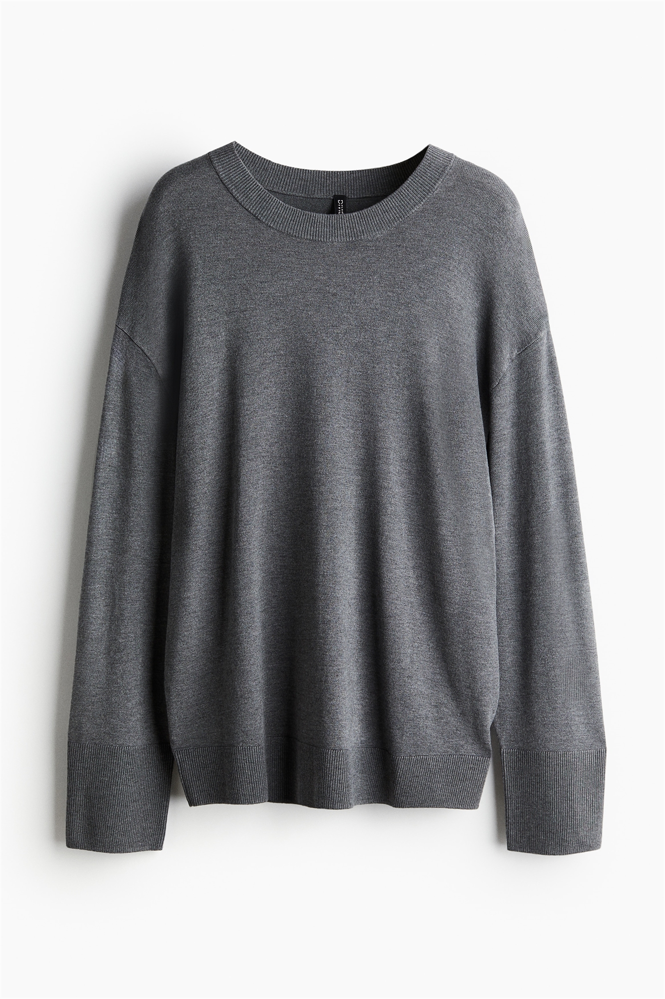 Джемпер свободного покроя из мягкой вискозы тонкой вязки с круглым вырезом в рубчик, спущенными плечами и длинными рукавами. Манжеты и подол отделаны ребрами жесткости.