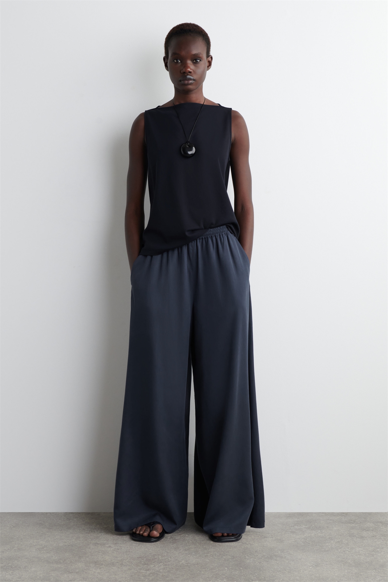 Команда женской одежды обновила одни из наших любимых брюк, создав летний, струящийся силуэт палаццо. Этот фасон, выполненный из красиво драпирующейся смеси купро, имеет свободный крой, длинные широкие штанины и скрытый регулируемый шнурок на эластичном поясе. Свободный крой Карманы в боковых швах TENCEL™ является брендом Lenzing AG. TENCEL™ Lyocell производится из возобновляемых источников древесины; 99% используемой воды и химикатов перерабатывается Внешний материал: 50% купро, 50% TENCEL™ Lyocell. Детали исключены/Машинная стирка Внутренняя длина ноги в размере ЕС 36 = 71,3 см/Модель носит размер ЕС 36