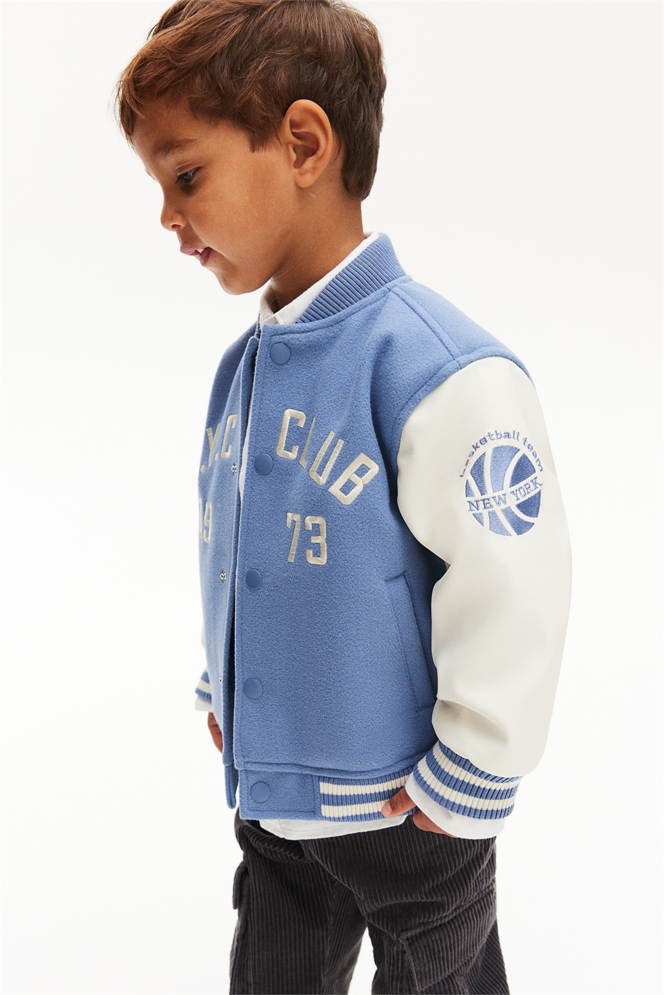 Куртка с мягкой подкладкой из тканого материала с декоративными текстовыми мотивами и контрастными цветными деталями. Ребристый воротник-стойка, кнопки спереди и прорезные передние карманы. Рифленые манжеты и подол. На подкладке.