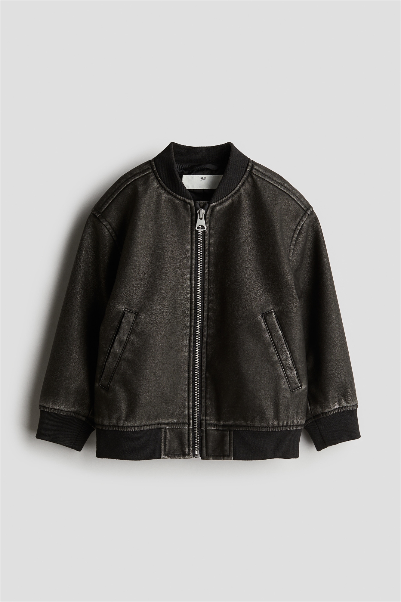 Куртка-бомбер из ткани с покрытием и потертым видом. Низкий ребристый воротник и застежка-молния спереди. Слегка спущенные плечи, прорезные передние карманы, манжеты и подол в рубчик. На подкладке.