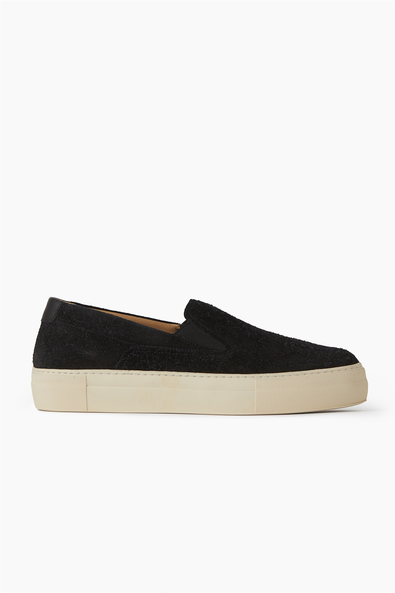 H&M Atelier. Слипоны из матовой замши с эластичными прорезями по бокам. Кожаные подкладка и стелька, резиновая подошва с рисунком. Высота подошвы 3,5 см.