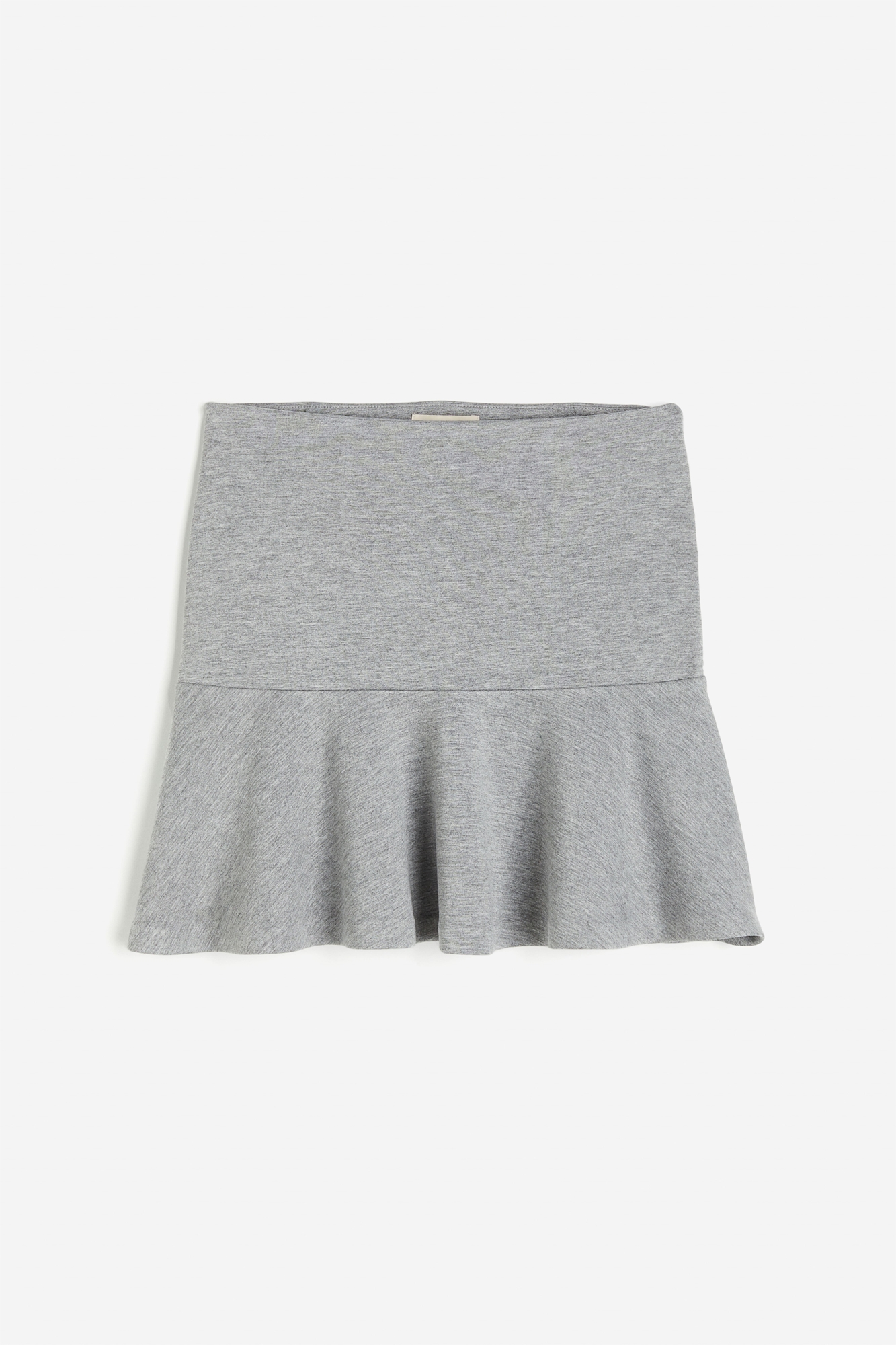 Короткая приталенная юбка из плотного джерси с высокой талией, потайной застежкой на молнию с одной стороны и расклешенным подолом.