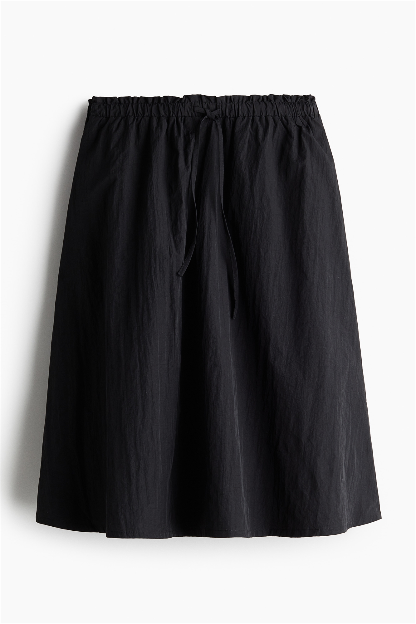 Круглая юбка из нейлона длиной до колен. Свободный крой с эластичной отделкой, небольшой окантовкой и завязкой на талии. На подкладке.