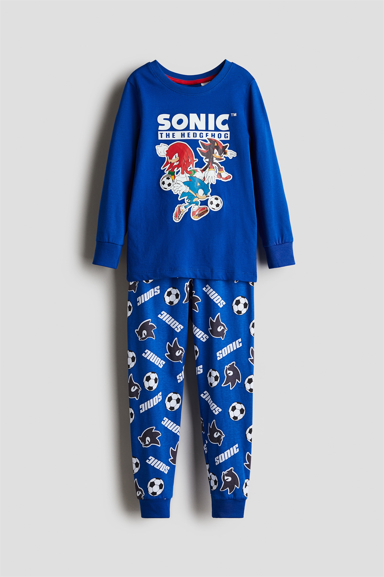 Пижама с верхом и низом из мягкого хлопкового джерси с принтом. Верхняя часть с длинными рукавами и окантовкой по вырезу горловины и манжетам. Нижние штанишки с мягкой эластичной вставкой на талии и ребристыми краями.