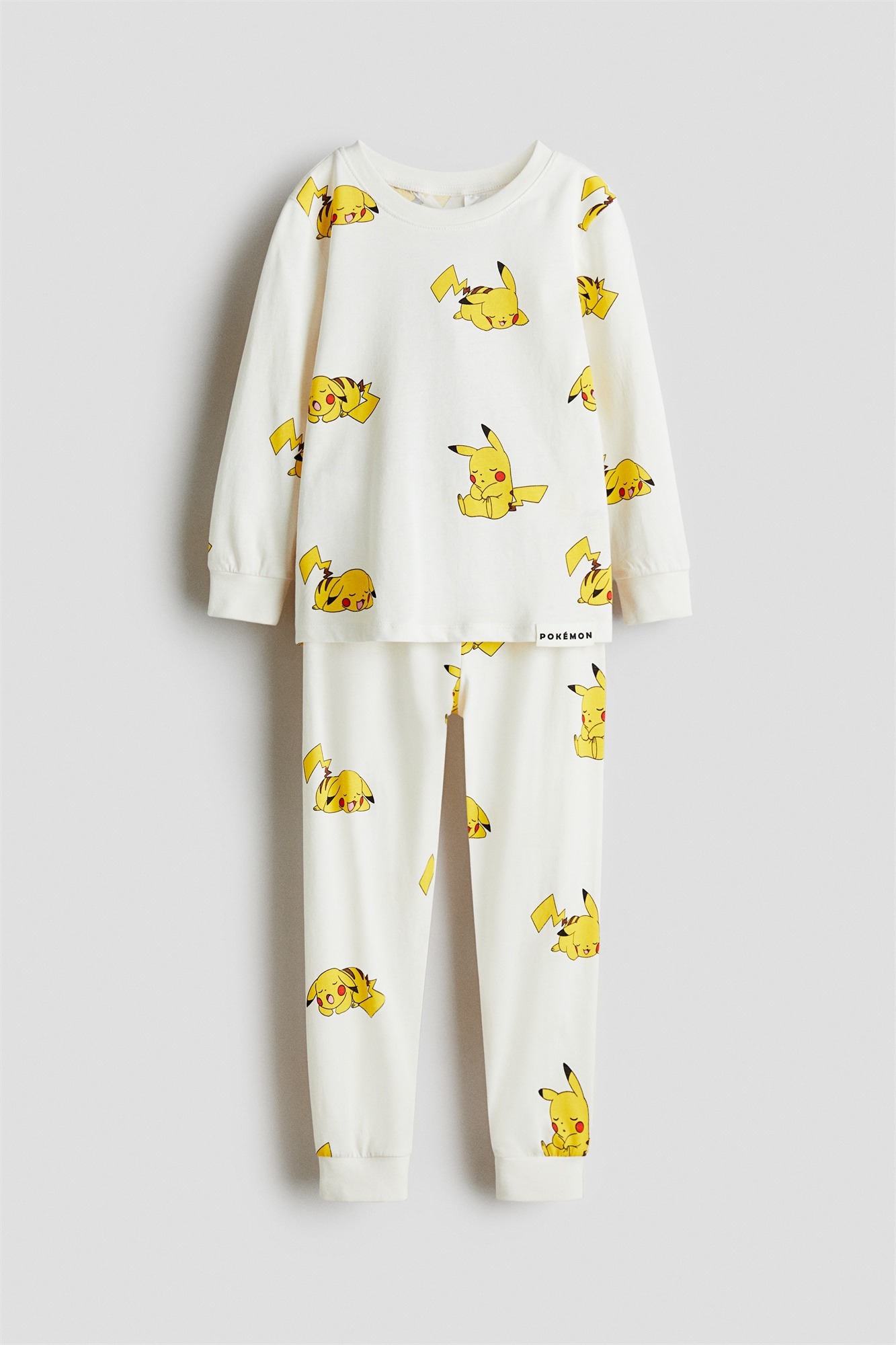 Пижама с верхом и низом из мягкого хлопкового джерси с принтом. Верхняя часть с длинными рукавами и окантовкой по вырезу горловины и манжетам. Нижние штанишки с мягкой эластичной вставкой на талии и ребристыми краями.