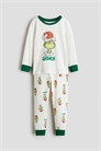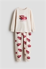 Пижама с верхом и низом из мягкого хлопкового джерси с принтом. Верхняя часть с длинными рукавами и окантовкой по вырезу горловины и манжетам. Нижние штанишки с мягкой эластичной вставкой на талии и ребристыми краями.