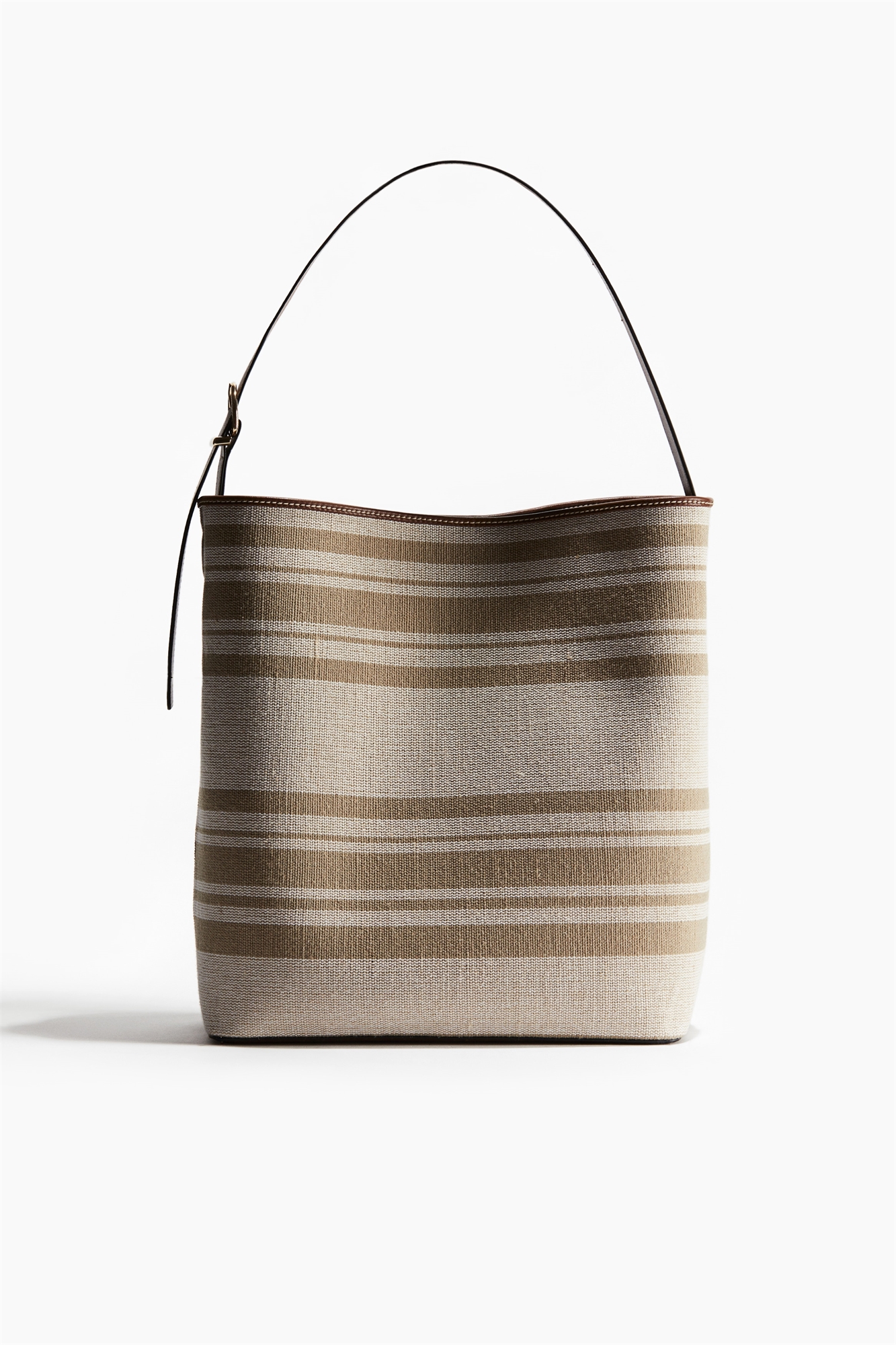Сумка-шоппер со скрытой магнитной застежкой и коротким регулируемым плечевым ремнем с металлической пряжкой. Два внутренних отделения. На подкладке. Глубина 15 см. Ширина 31 см. Высота 35 см.