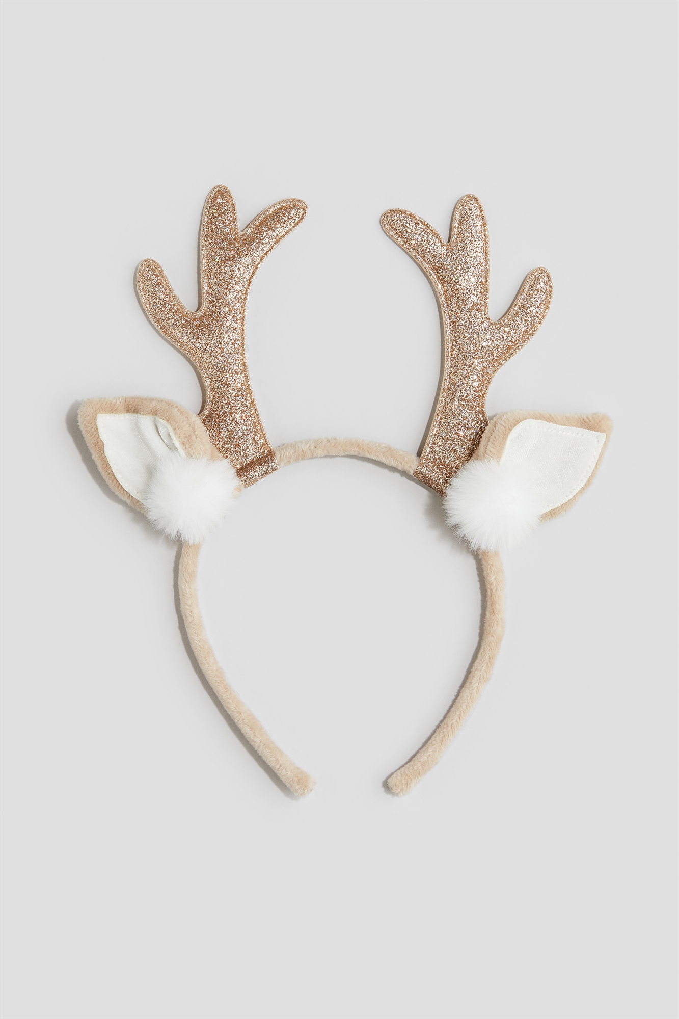 Повязка "Алиса" из пушистой ткани, украшенная блестящими роговыми аппликациями и ушками.