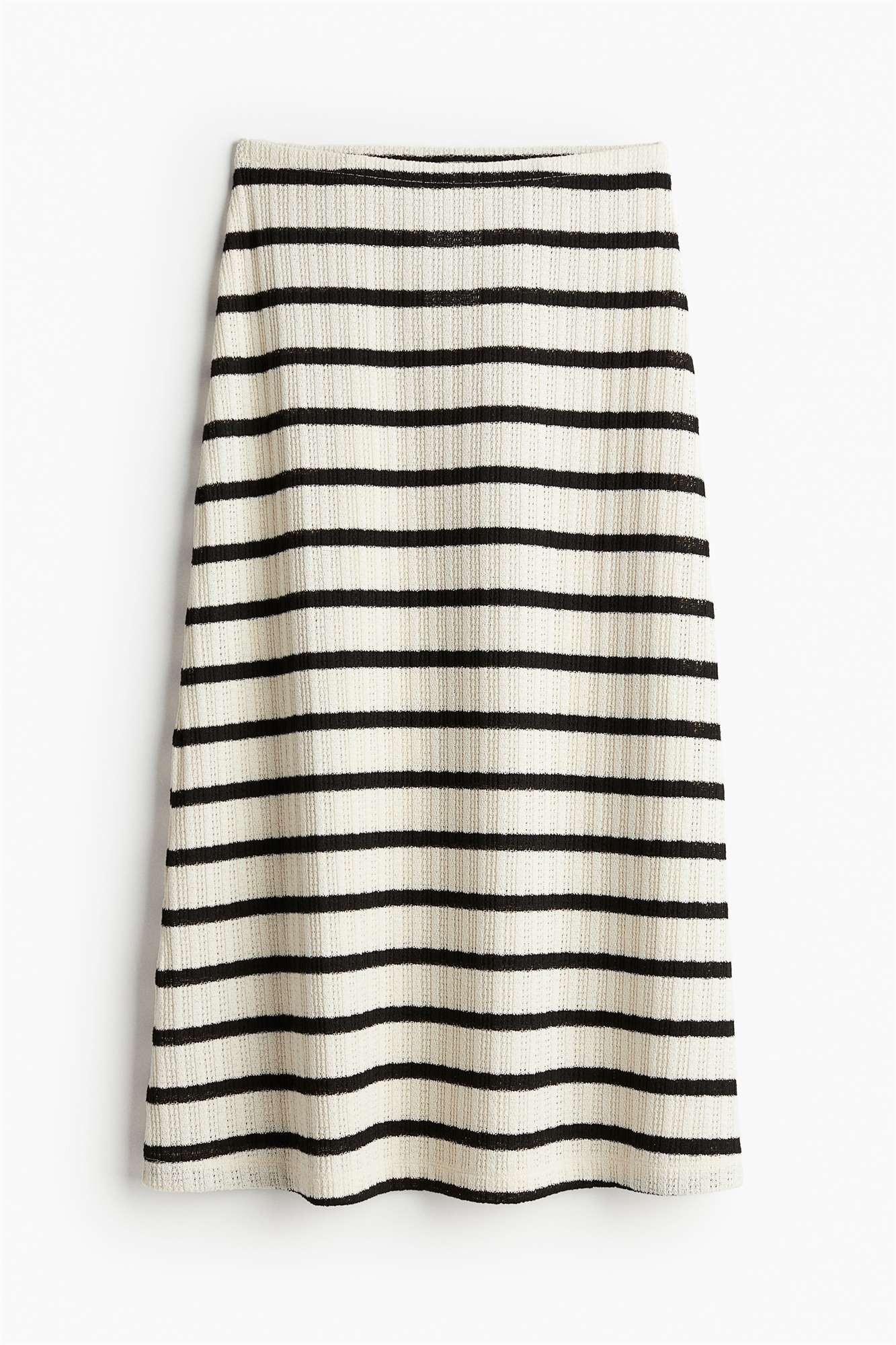 Юбка длиной до колен из фактурного трикотажа с эластичным поясом на талии.