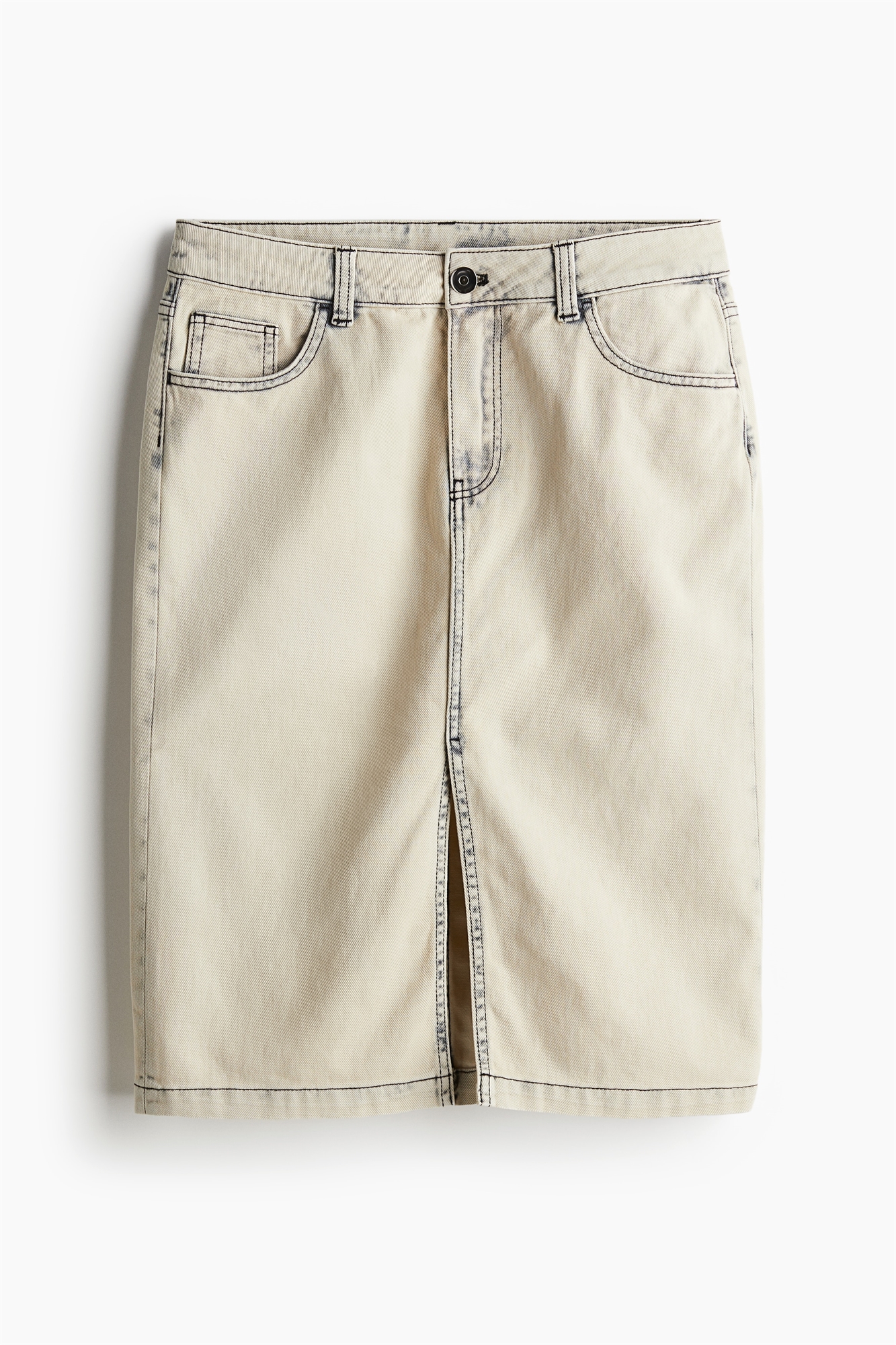 Юбка длиной до колена с 5 карманами из хлопковой саржи с заниженной талией, ширинкой на молнии и пуговице и высоким разрезом спереди.