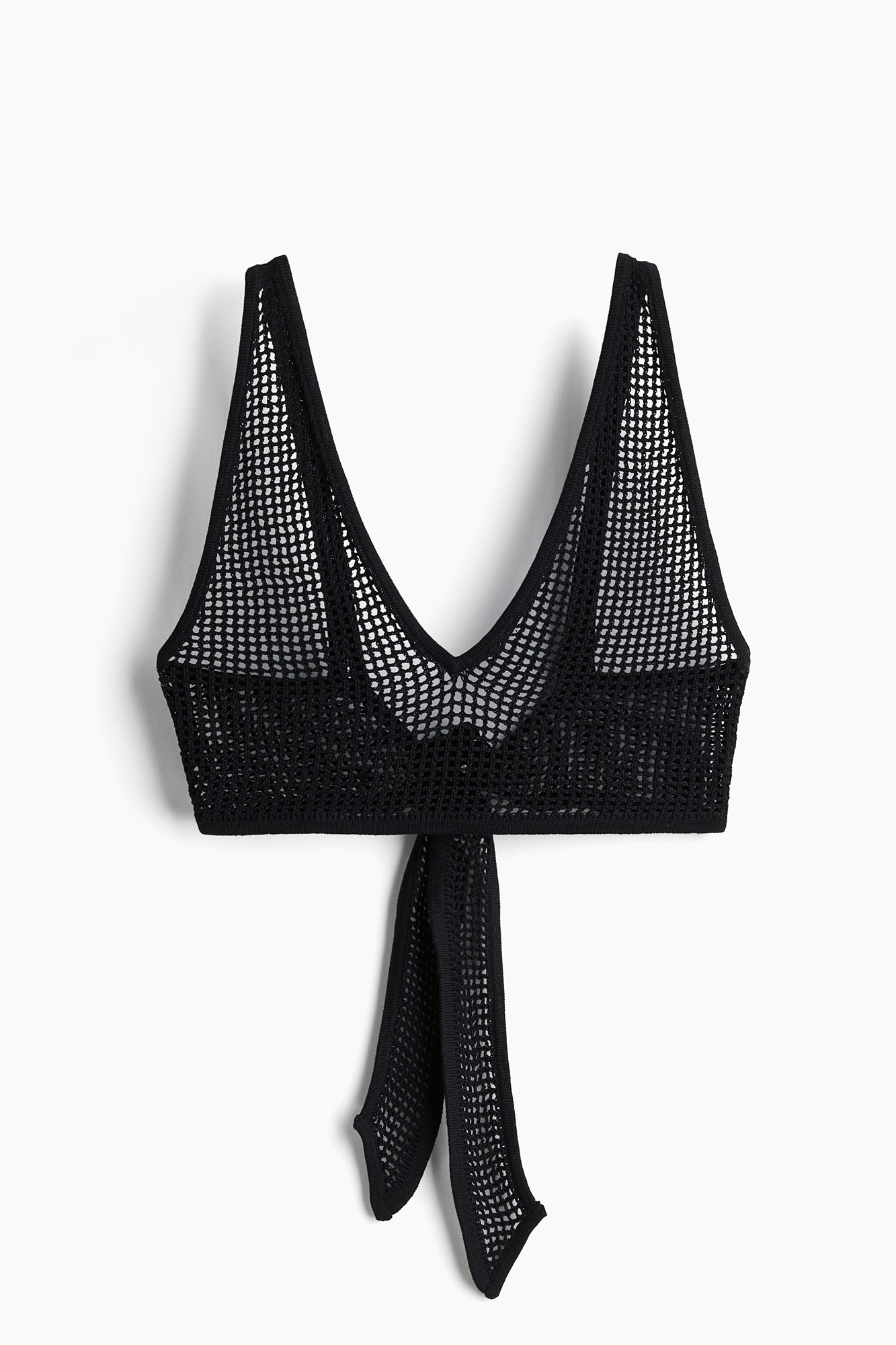 Обрезанный пляжный топ из мягкого трикотажа с глубоким V-образным вырезом, широкими бретелями и завязками на спине.