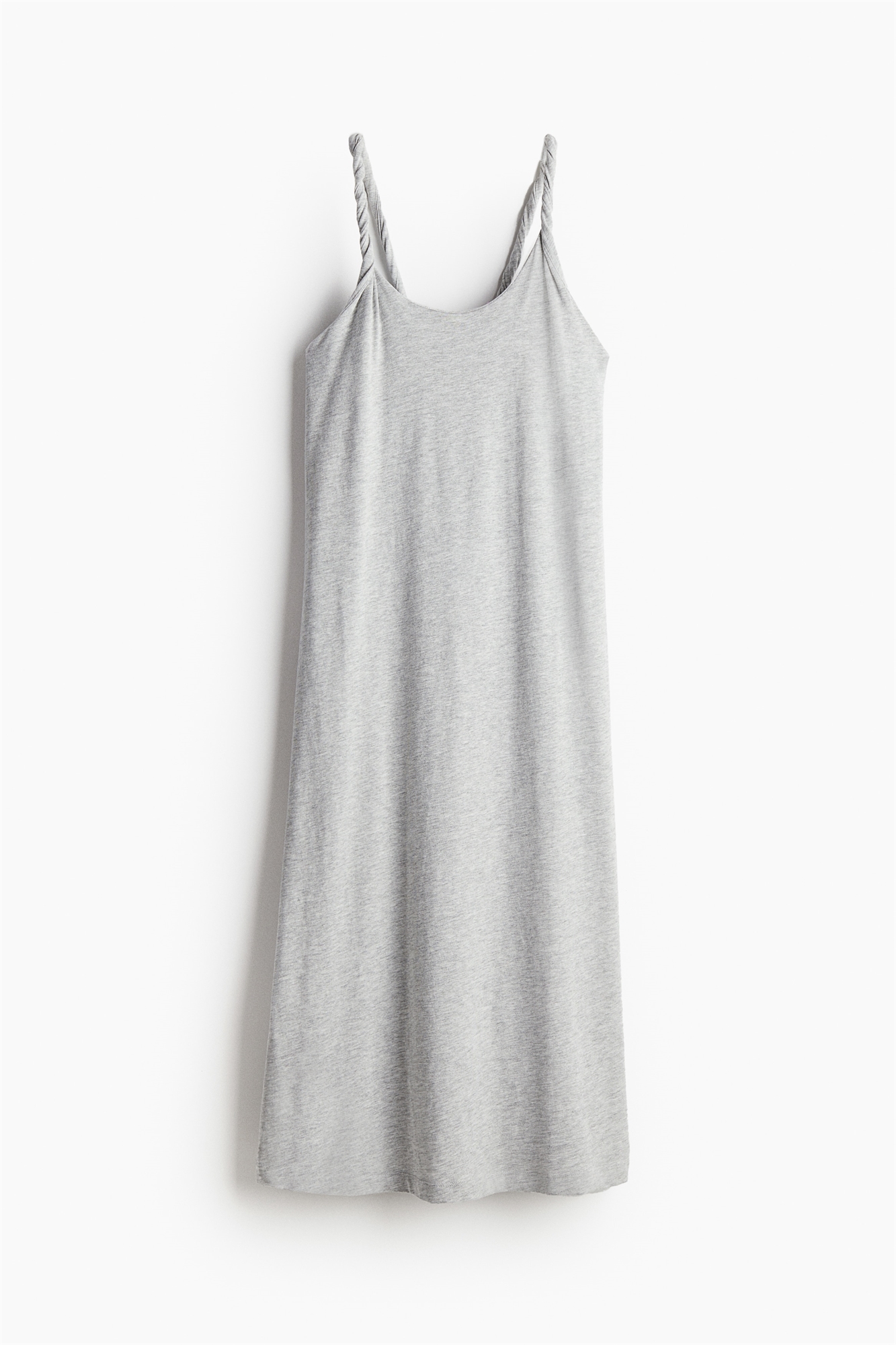 Платье длиной до колена из мягкого джерси с глубоким круглым вырезом, перекрученными бретелями и облегающей спиной с горизонтальными завязками-спагетти. На подкладке в области бюста.
