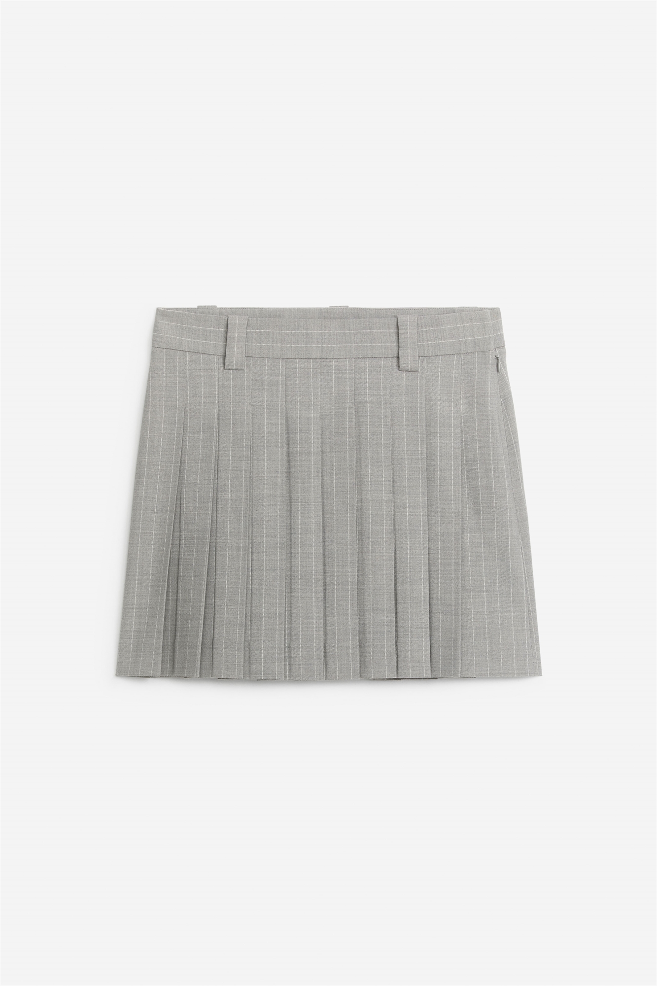 Мини-юбка из шерстяной смеси. Фасон A-line со складками и высокой талией. Без отделки. Материал оболочки содержит 44% шерсти RWS, сертифицированной контрольным союзом 893290. Продукция, сертифицированная по стандарту ответственной шерсти (RWS), содержит шерстяное волокно с ферм, прошедших независимую сертификацию на соответствие требованиям по благополучию животных и землепользованию.