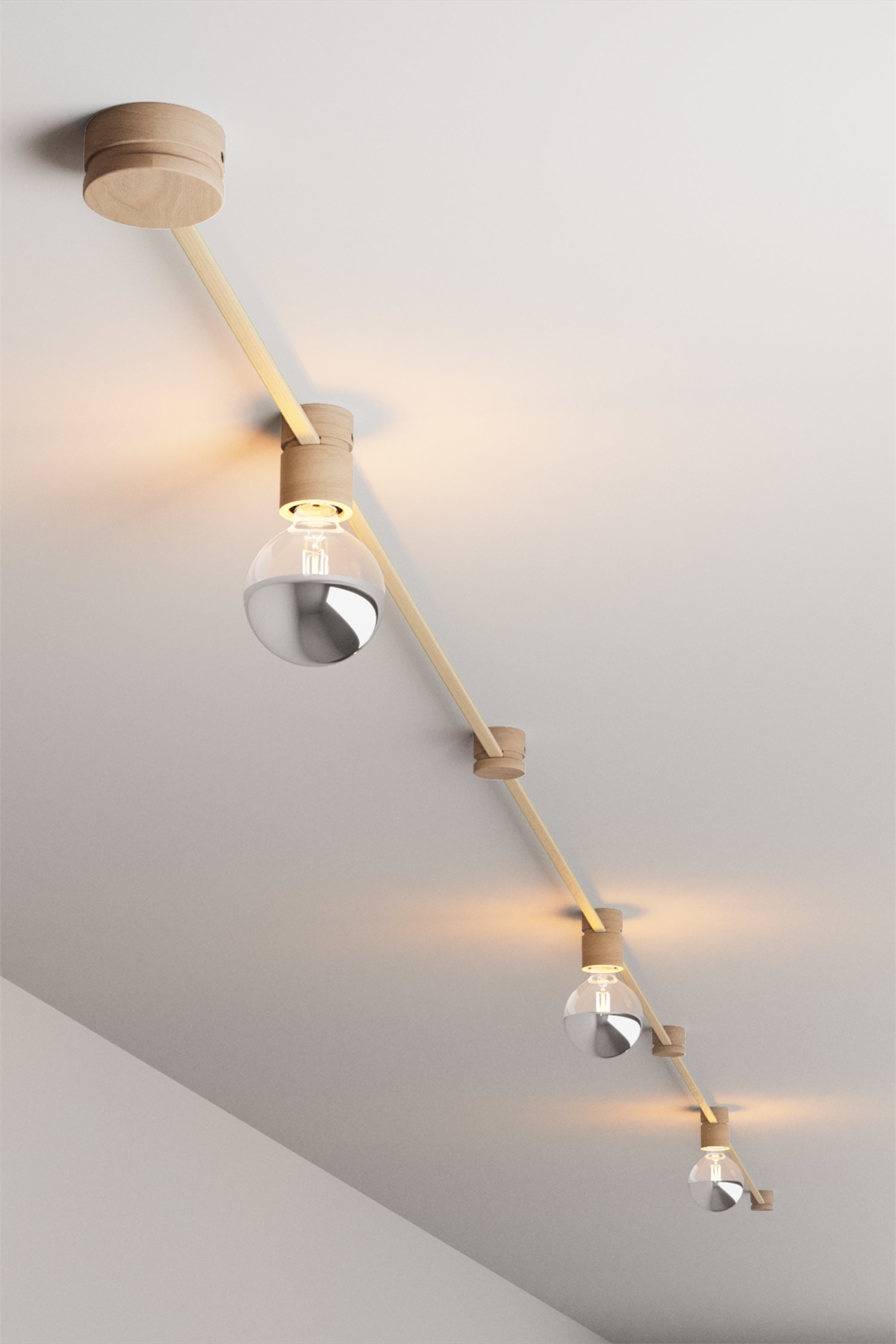 Модульная, настраиваемая установка для стены или потолка. Состоит из нескольких элементов, которые можно комбинировать, создавая индивидуальные световые решения. Текстильный кабель для феи: длина 500 см. Навес из натурального дерева диаметром 8 см. 3 держателя для ламп из натурального дерева диаметром 5 см и высотой 7 см. 2 настенные и потолочные направляющие из необработанного дерева. 1 кабельный наконечник из белого лакированного дерева. В комплект входят лампочки с отражателем серебристого цвета, 7 Вт 730 Лм. Изделие необходимо собрать самостоятельно.
