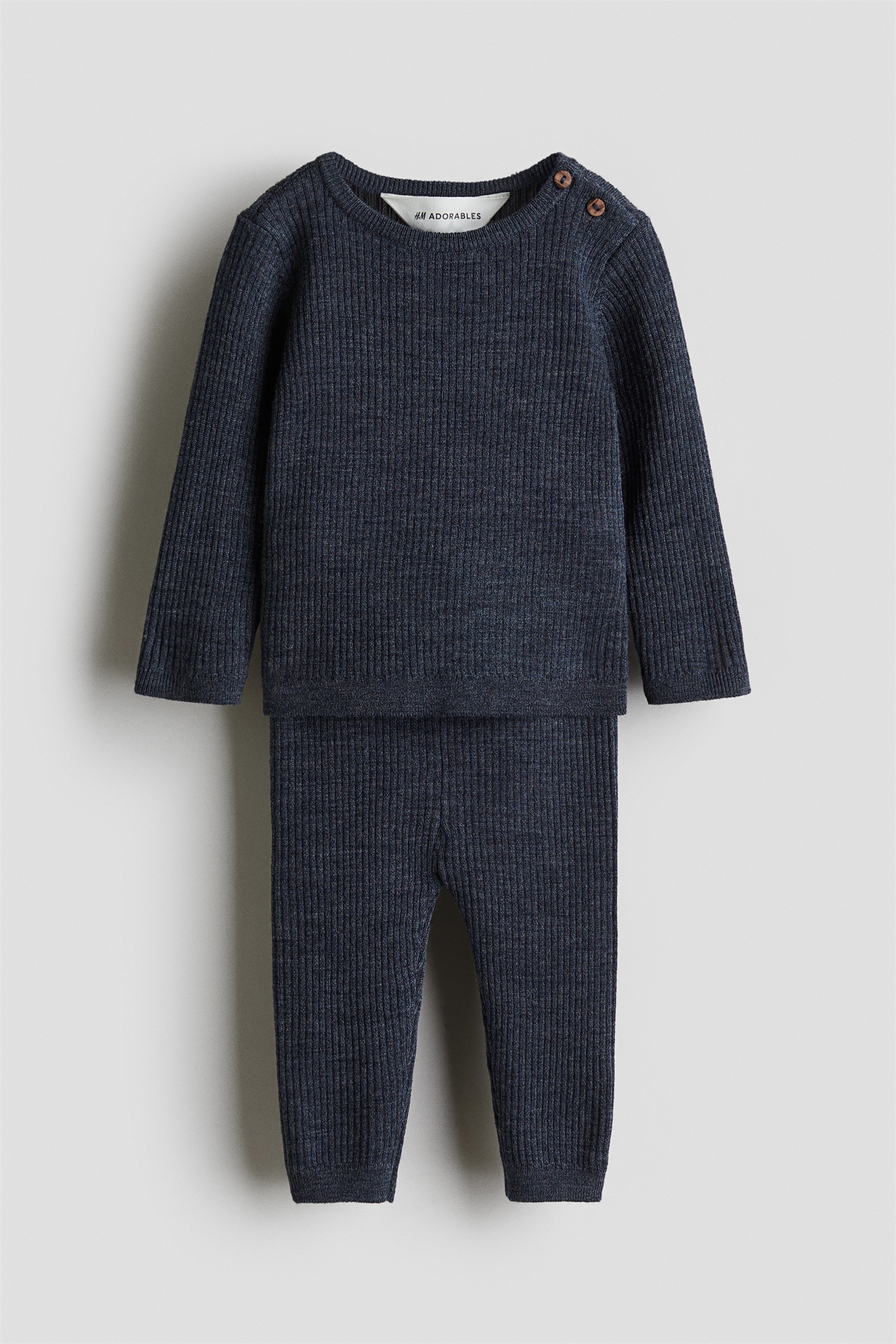 H&M Adorables. Комплект из джемпера и леггинсов в рубчик из шерсти мериноса, которая мягко прилегает к коже. Джемпер с длинными рукавами, пуговицами corozo на одном плече и узкой тесьмой по вырезу, манжетам и подолу. Леггинсы с регулируемой резинкой на талии и узкой тесьмой по поясу и подолу. Шерсть мериноса естественным образом регулирует температуру и обеспечивает долговечную одежду с бесконечным комфортом, которую можно носить в течение многих лет. Коллекция H&M Adorables - это подборка удобных и качественных вещей, которые не подвластны времени.