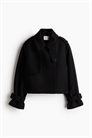 Короткий двубортный жакет из войлока с лацканами с вырезом и потайными кнопками спереди. Свободный крой с клапаном-штормовкой, вкладкой с прижимной планкой в верхней части и скрытыми карманами в боковых швах. Фиксированные погоны и длинные рукава с регулируемой вкладкой и застежкой на манжетах. На подкладке.