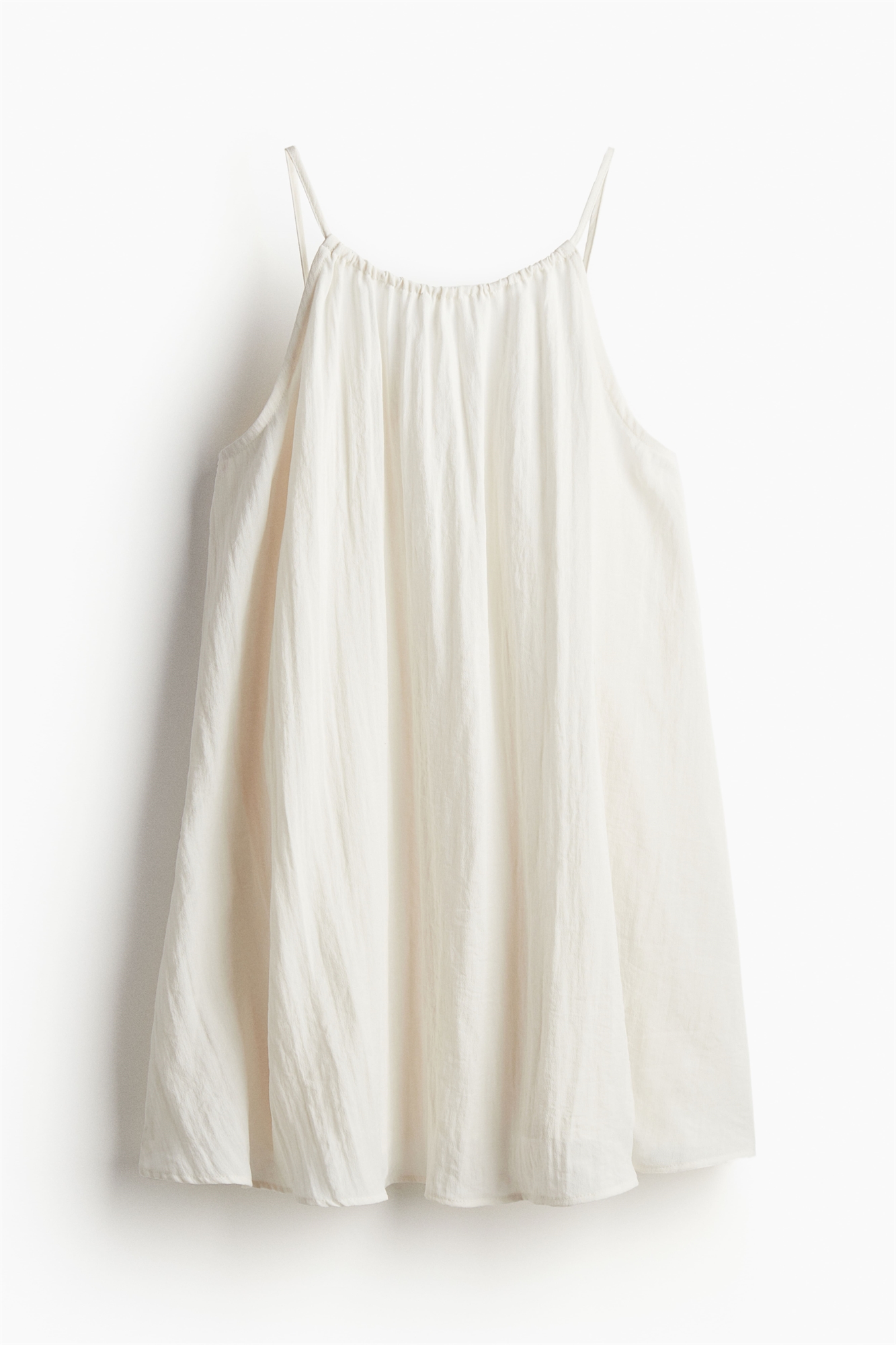 Короткое платье А-линии из тканого материала. Свободный крой с квадратным вырезом с завязками, узкими бретелями, разрезом и узкими завязками сзади. Подол прямого кроя. Без подкладки.