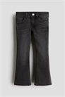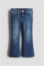 Джинсы с 5 карманами из эластичного хлопкового денима. Зауженный крой по бедрам и бедрам с расклешенными ногами. Регулируемый эластичный пояс и ширинка на молнии с кнопкой.