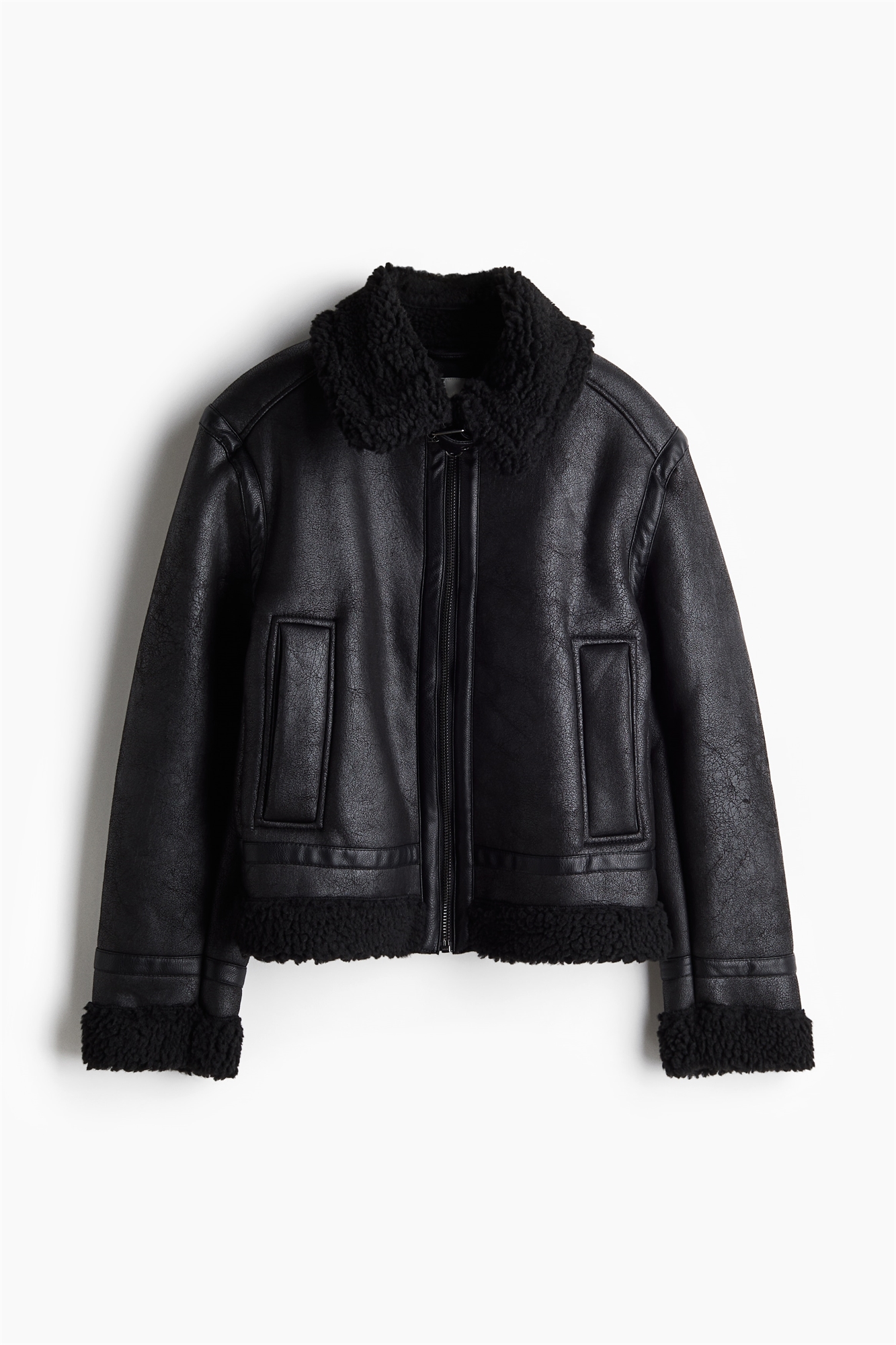 Куртка из ткани с покрытием, воротник, манжеты, подол и подкладка из мягкого плюша. Застежка-молния спереди, регулируемая застежка с металлической пряжкой вверху, прорезные боковые карманы и длинные рукава.