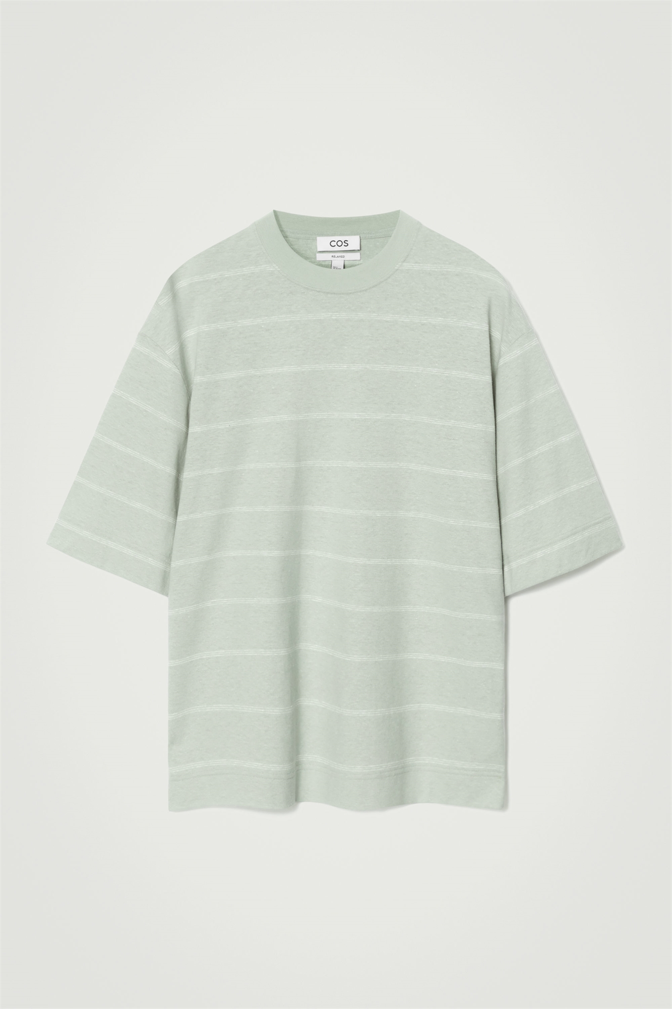 Футболки в полоску - неотъемлемая часть повседневного гардероба. Эта футболка из смеси конопли и органического хлопка - новая интерпретация для лета, в которой комфортно даже в теплые дни. Свободный крой, спущенные плечи и ребристый круглый вырез. Свободный крой Конопля - легкий материал, по текстуре и ощущениям напоминающий лен Внешняя ткань: 56% конопли, 47% органического хлопка. Детали исключены/Машинная стирка Длина по спинке в размере M = 65,9 см/Модель носит размер M