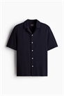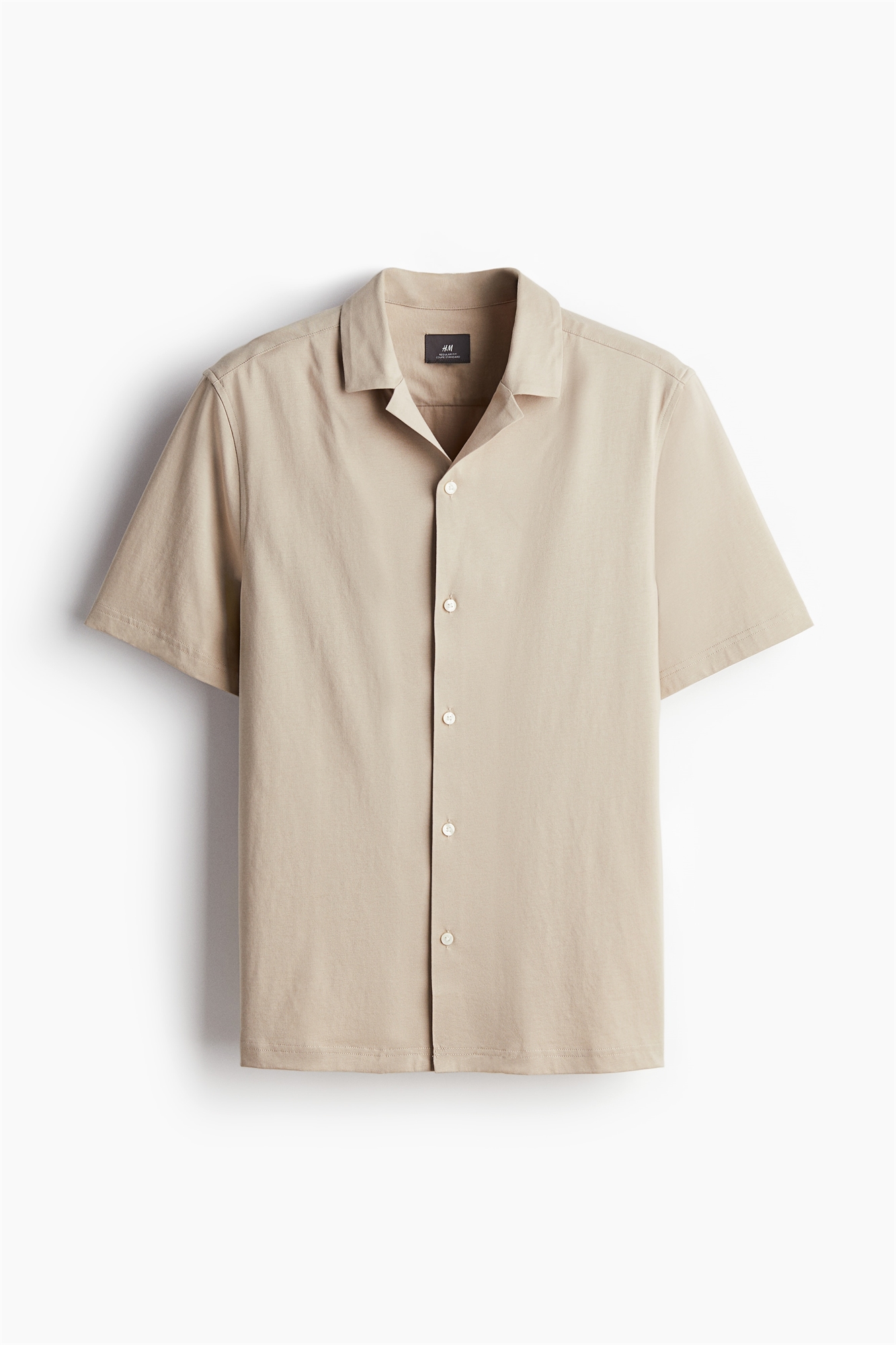 Рубашка с короткими рукавами из хлопка пима. Модель с отложным воротником, французской пуговицей, задними складками и прямым подолом. Регулярный крой для комфортной посадки и классического силуэта.
