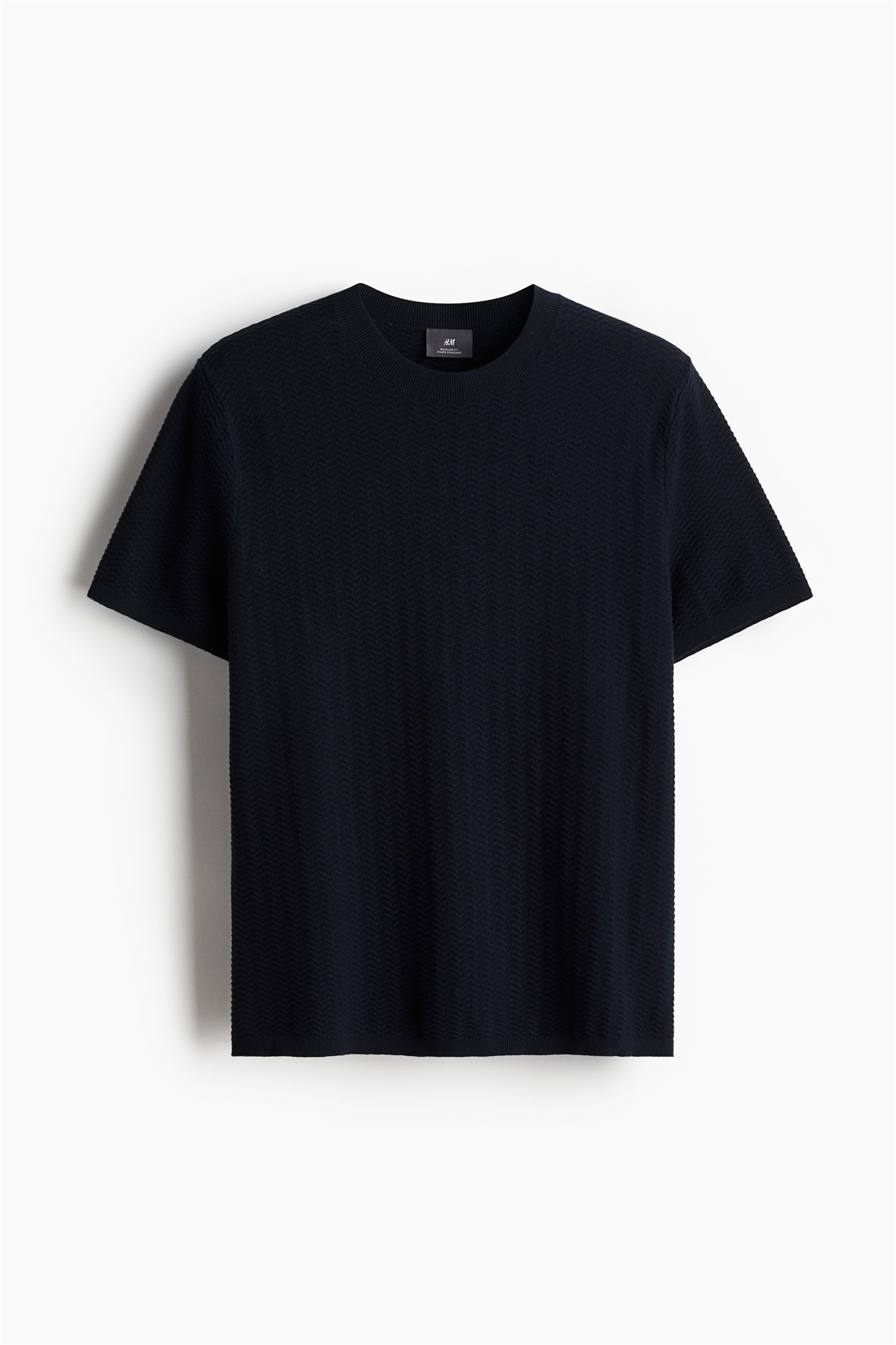 Футболка из фактурного трикотажного хлопка с круглым вырезом с ребристой отделкой и прямым подолом. Тонкий рубчик на манжетах и подоле. Регулярный крой для комфортной носки и классического силуэта.