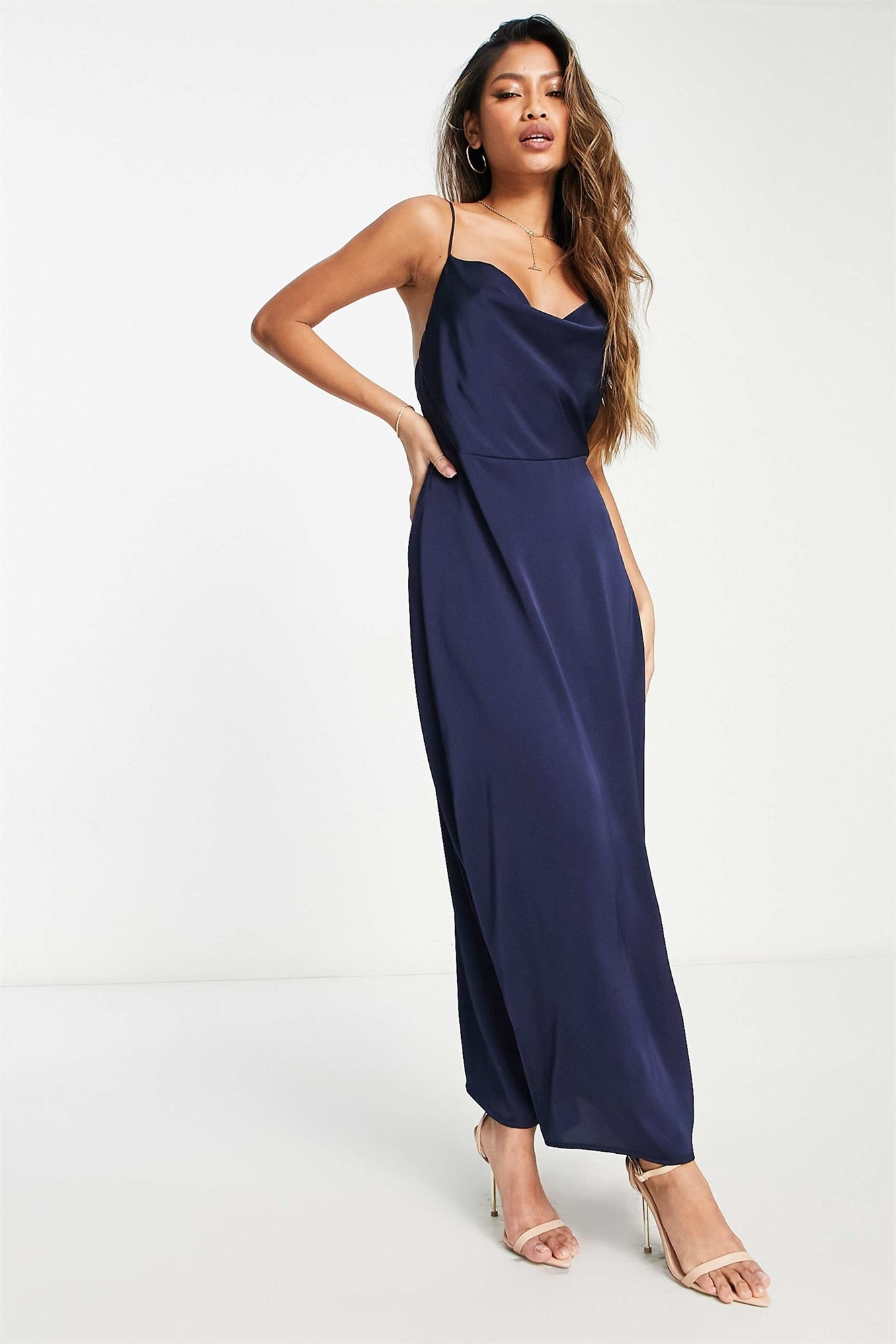 Макси-платье из атласа с капюшоном