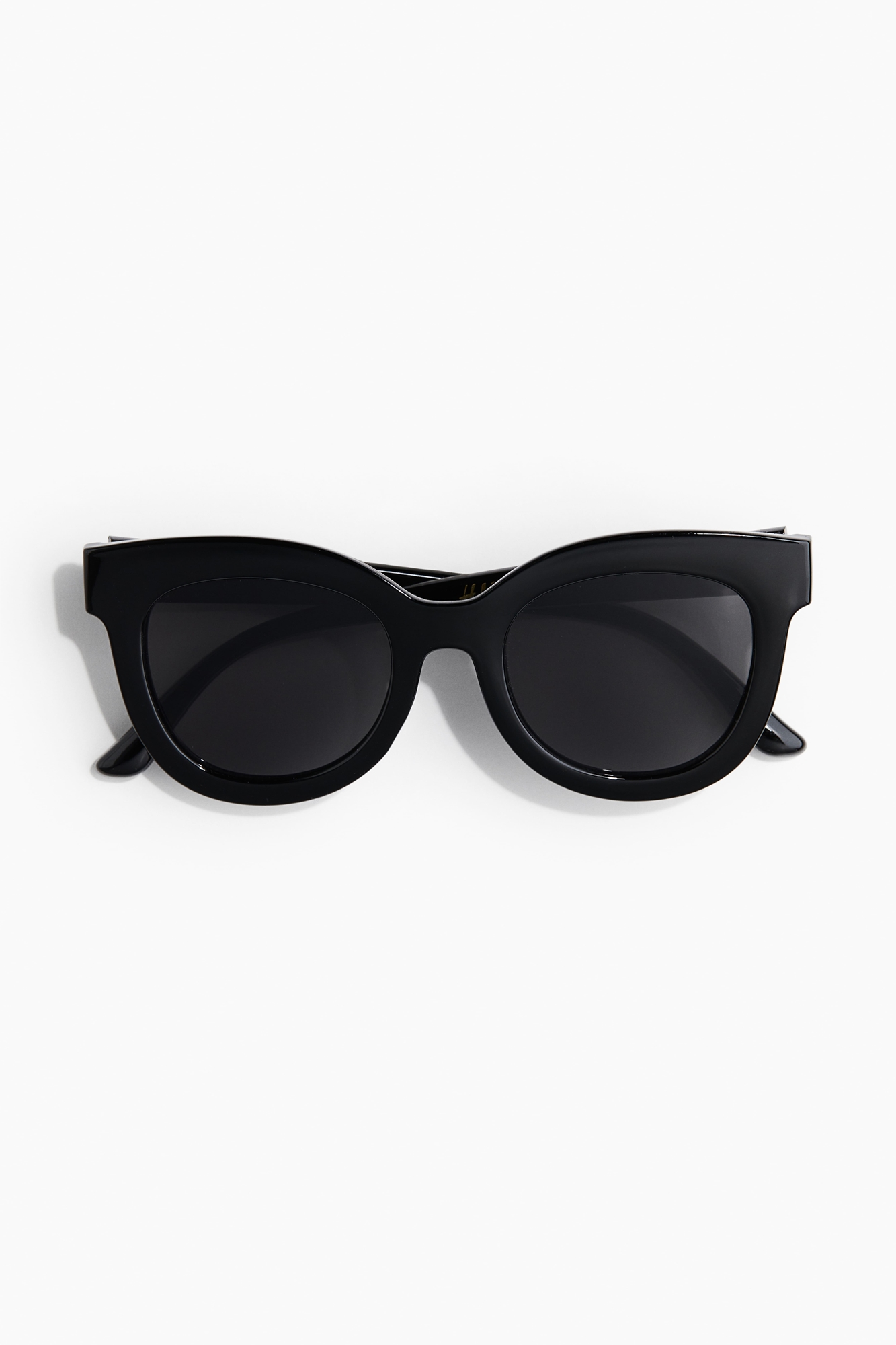 Солнцезащитные очки со смелой пластиковой оправой и боковыми дужками. Тонированные линзы с защитой от ультрафиолета.