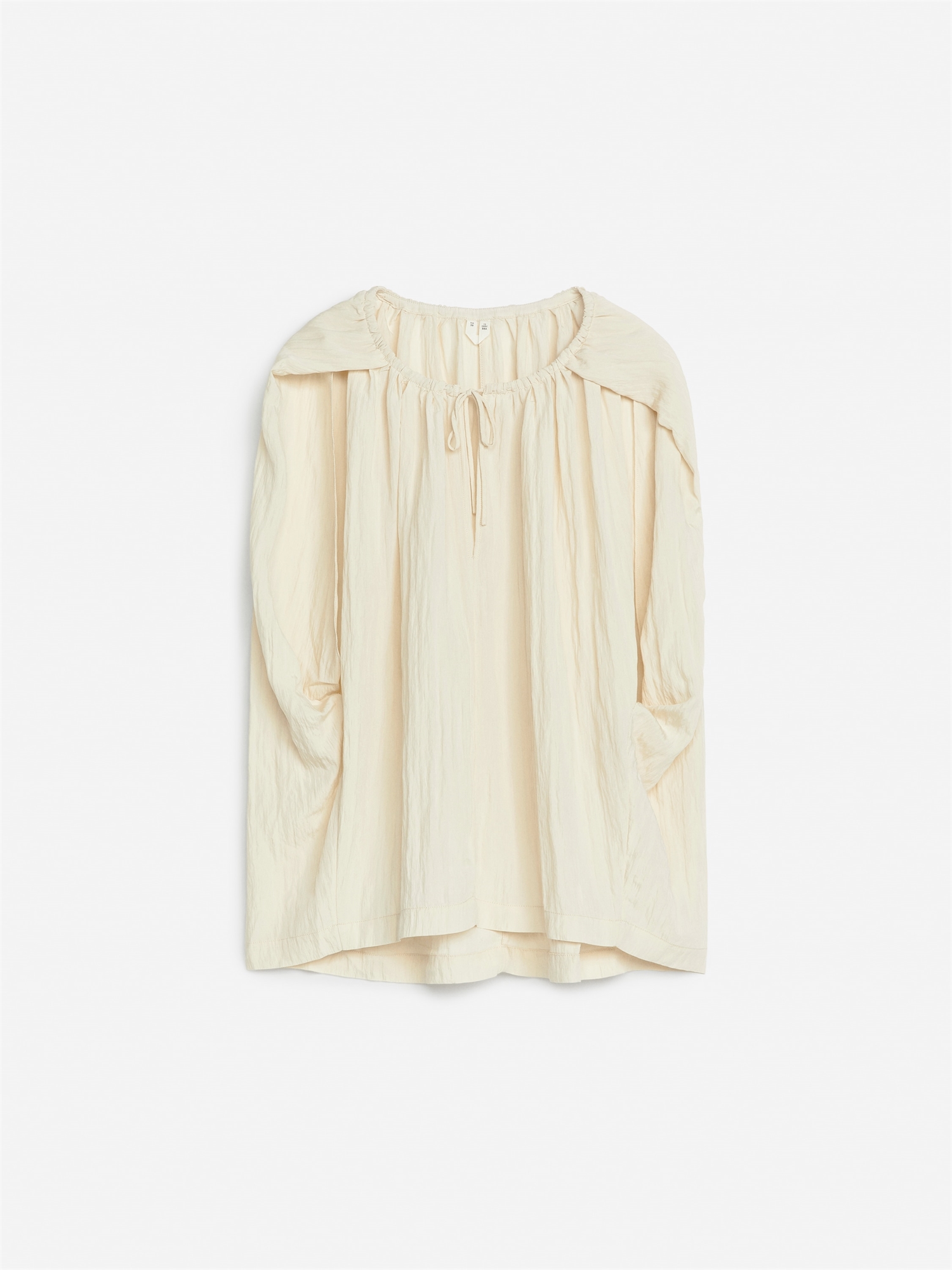 Топ-накидка из вискозного микса с эффектом "кринкл". Свободный крой с рисунком в виде конверта на плечах, завязки на вырезе и разрезы по бокам.