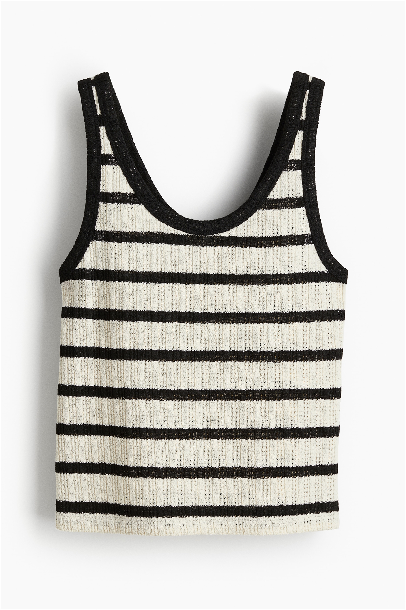 Жилет-топ из фактурного трикотажа с широкими бретелями и глубоким круглым вырезом спереди и сзади.