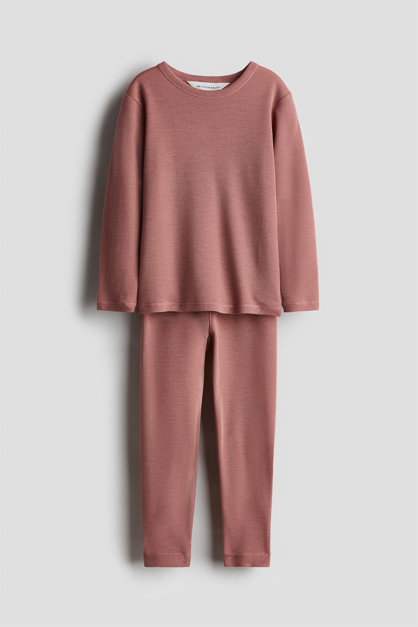 H&M Adorables. Комплект базового слоя из топа и леггинсов из мягкого шерстяного трикотажа, который приятно прилегает к коже. Топ с длинными рукавами и круглым вырезом и леггинсы с эластичной талией. Шерсть естественным образом регулирует температуру и обеспечивает долговечную одежду с бесконечным комфортом, которую можно носить в течение многих лет. Коллекция H&M Adorables - это подборка качественных вещей повышенной комфортности, которые не подвластны времени.