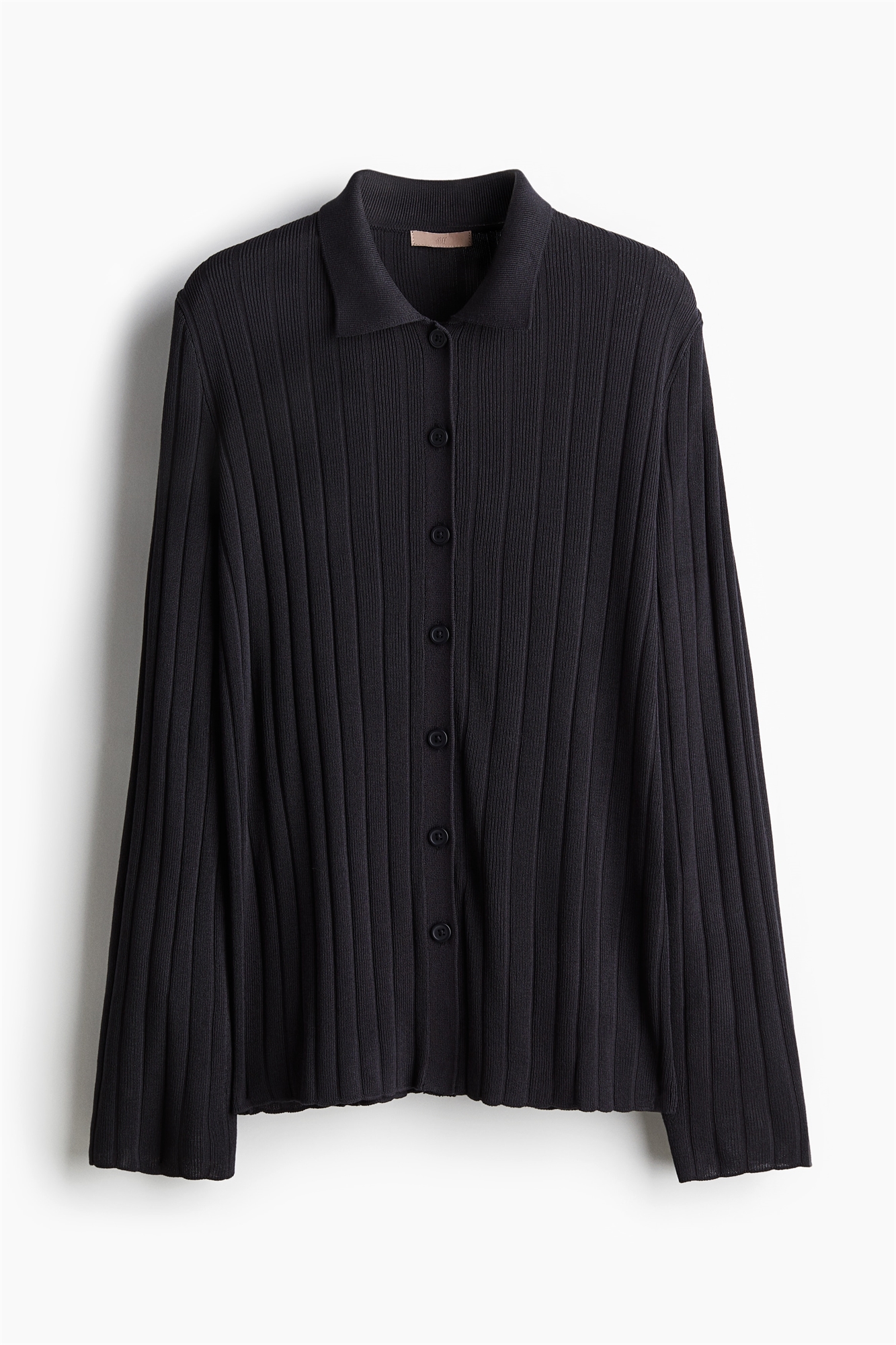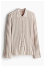 Топ из мягкого трикотажа в рубчик с воротником, пуговицами спереди и удлиненными рукавами.