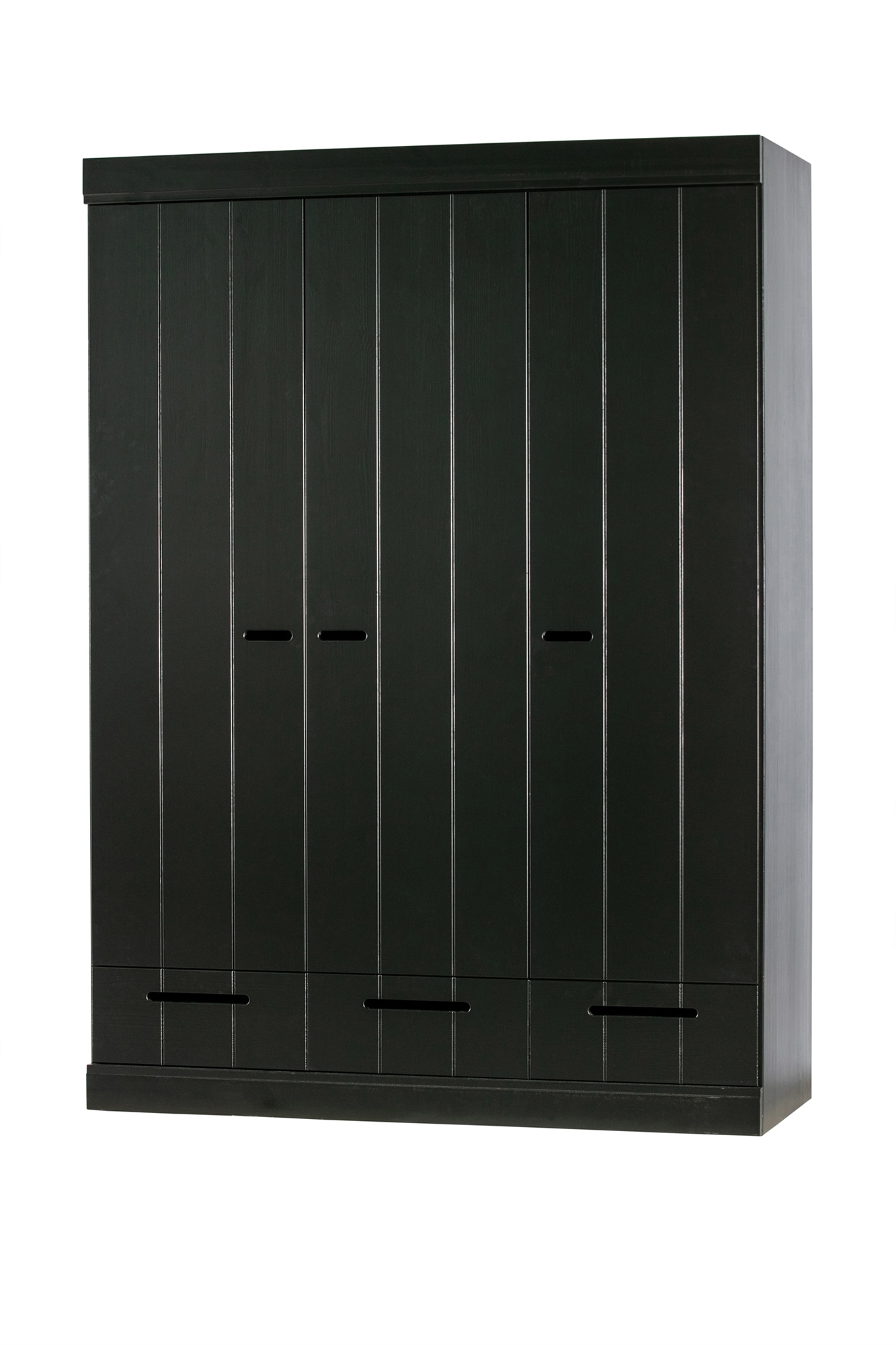 Этот 3-дверный шкаф Connect с выдвижным ящиком и реечной дверью с ручкой-скобой из коллекции голландского бренда WOOOD - вместительный, прочный шкаф. Корпус 2-дверного шкафа Connect изготовлен из массива сосны, сертифицированной FSC, с черной отделкой. Внутри имеются ламинированные полки, которые удобно мыть. Трехдверный шкаф Connect поставляется в стандартной комплектации с навесным шкафом и 1 полкой по всей ширине шкафа. За крайней правой дверью расположены 3 полки. Ширина полки с правой стороны 45 см. От низа до верха между полками 37 / 41 / 34 / 37 см. Это фиксированные размеры, поэтому они не регулируются.