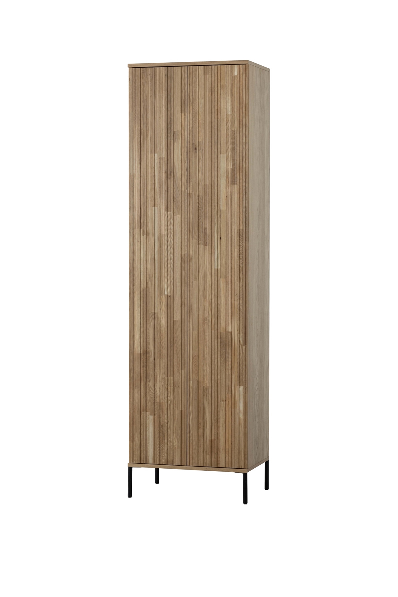 Наша успешная серия Gravure в новом цвете! Этот шкаф Gravure New из коллекции голландского бренда мебели WOOOD - находка для организаторов. Высокий шкаф Gravure New изготовлен из шпона дуба с прозрачной морилкой. Внутренняя отделка выполнена из ДСП в туманно-сером цвете. Ножки выполнены из металла с черным покрытием. Высокий шкаф Gravure New оснащен двумя дверцами с системой бесшумного открывания push-to-open и практичным выдвижным ящиком. Высокий шкаф Gravure New: В 210 см, Ш 60 см, Г 42 см. Дверные фасады без ручек, 3 регулируемые по высоте полки. 5 отделений: 37x57x39 см. Выдвижной ящик: 14,5x46x30 см, плавное закрывание. Металлические ножки: H 15 см, ø 2 см.