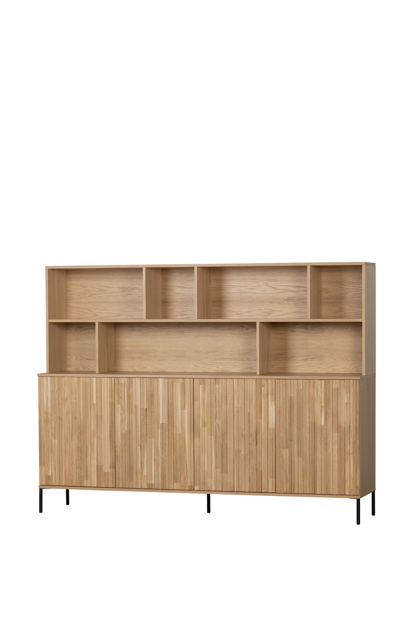 Настенный шкаф New Gravure - уникальное дополнение к серванту New Gravure из коллекции голландского бренда WOOOD, специализирующегося на дизайне интерьеров. Дуб - натуральный материал, который мы любим подчеркивать, характерные зерна различны для каждого изделия. Это делает каждый New Gravure уникальным. Дуб характеризуется светло-коричневым цветом с мягким желтым мерцанием и хорошо заметными зернами. Высота настенного шкафа New Gravure составляет 150 см. Его ширина составляет 200 см, а глубина - 44 см. Глубина настенного шкафа составляет 30 см. Верхний ряд полок имеет высоту 31 см и различную ширину +/- 60 см и +/- 31 см. Нижний ряд отделений имеет три отделения, также высотой 31 см и шириной 31/100/62 см.
