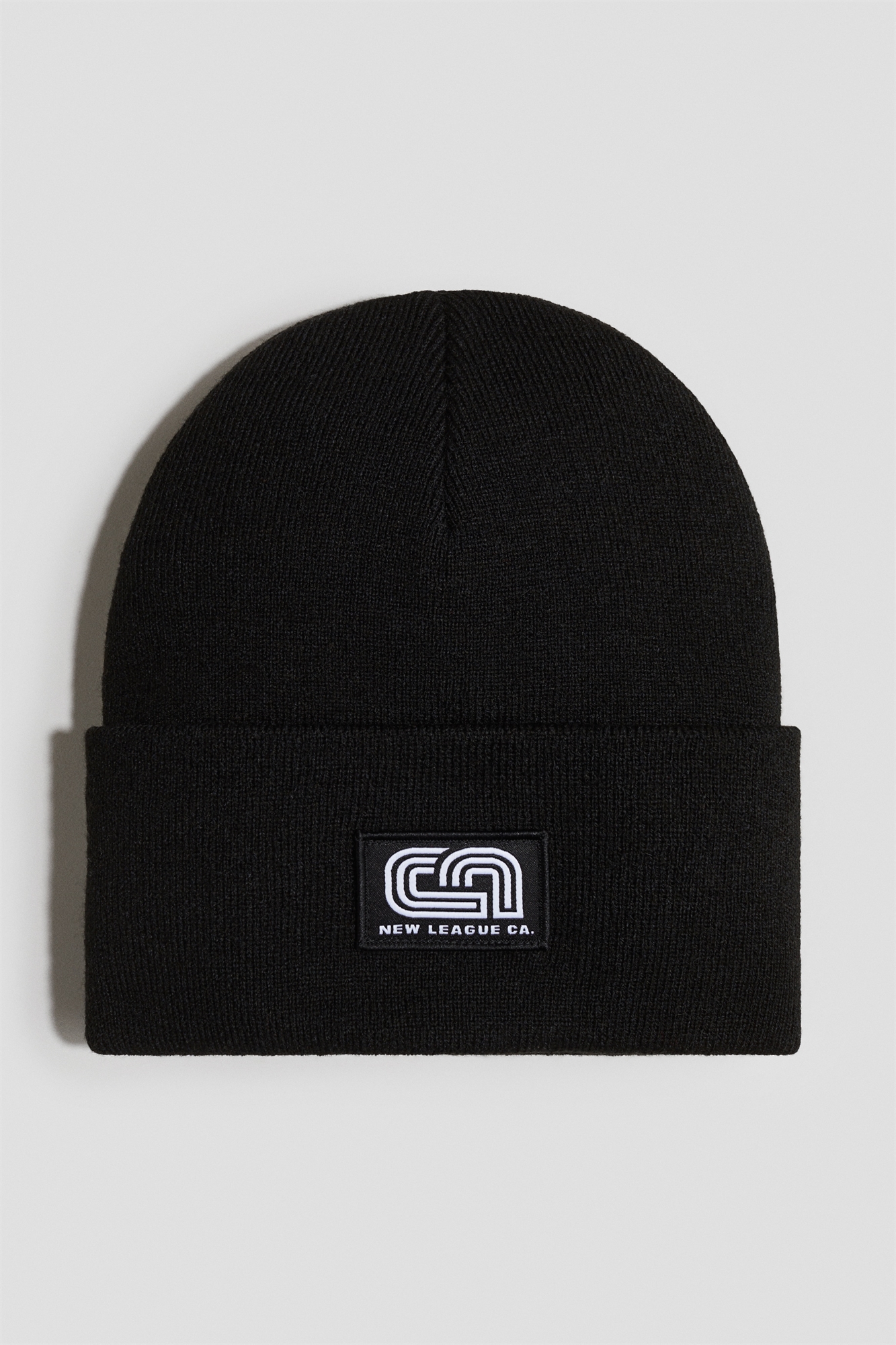 Бини из тонкого трикотажа в рубчик с аппликацией спереди.
