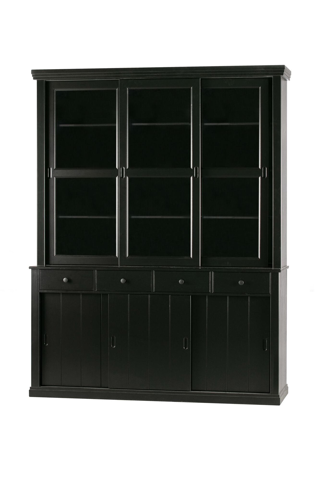 Lagos - это деревенский, вневременной шкаф из коллекции голландского бренда WOOOD. Шкаф изготовлен из массива сосны, сертифицированной FSC, и имеет черную отделку. Задняя панель изготовлена из МДФ, а сам шкаф оснащен полками из ДСП. Внутренняя часть окрашена в черный цвет. Верхние раздвижные двери оснащены безопасным стеклом. Этот шкаф состоит из двух отдельных частей. Нижняя часть имеет размеры 85x163x48 см (ВхШхД), а верхняя часть - 128x166x38 см (ВхШхД). Шкаф имеет три нижние и три верхние раздвижные двери и четыре выдвижных ящика с деревянными ручками между ними. Глубина полок составляет 28 см. Глубина нижней полки - 40 см. В 215 см x Ш 166 см x Г 48 см.