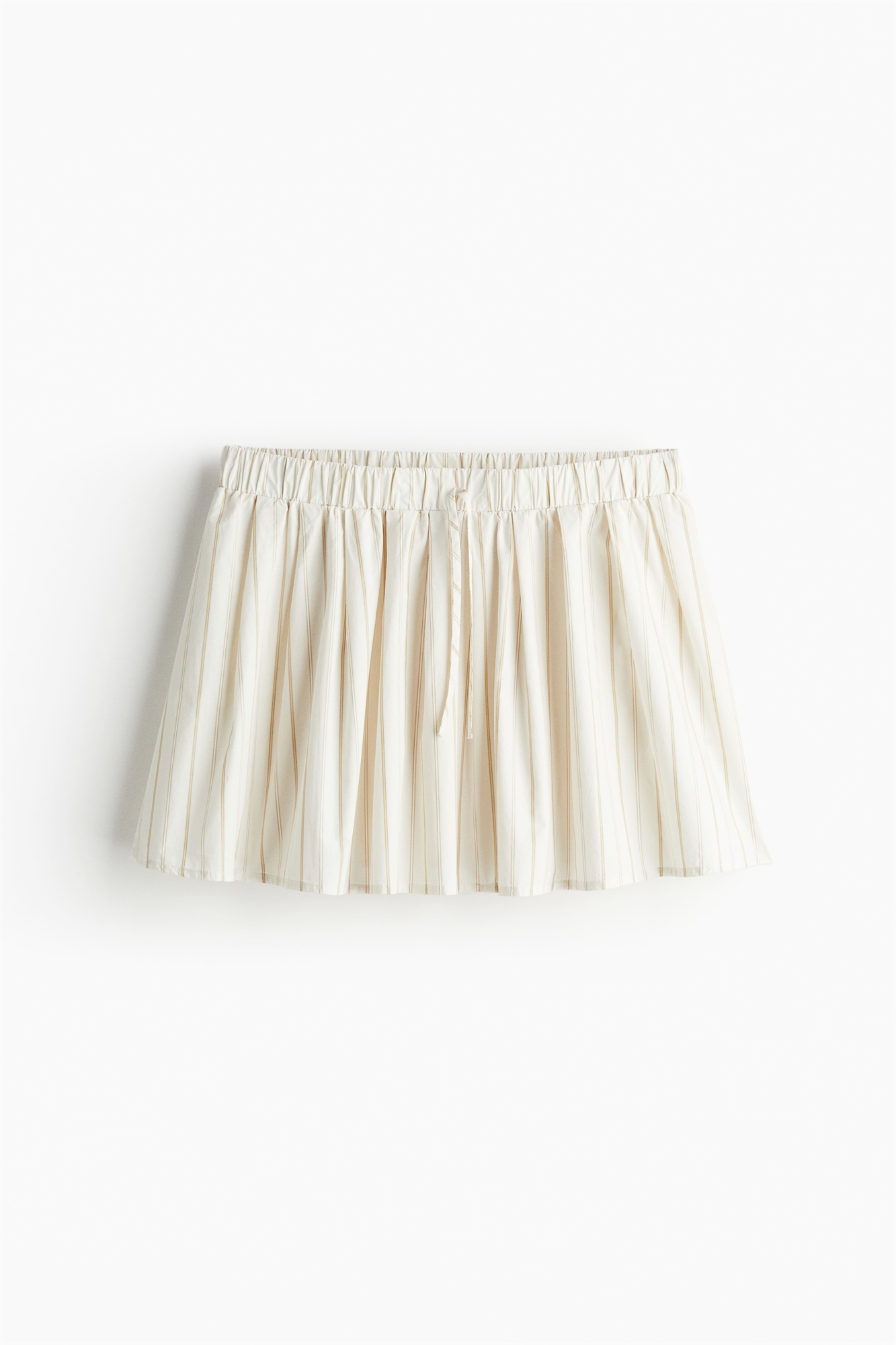 Мини-юбка свободного покроя из мягкого хлопкового полотна с эластичной отделкой и декоративными завязками на талии. Сборки и складки ниже пояса для придания дополнительного объема. Без подкладки.