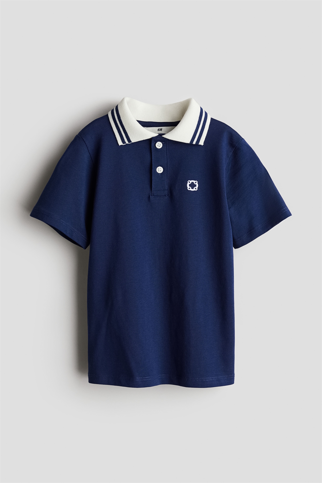 Рубашка-поло из хлопкового джерси с вышитым мотивом на груди. Воротник акцентного цвета, застежка на пуговицах и короткие рукава.