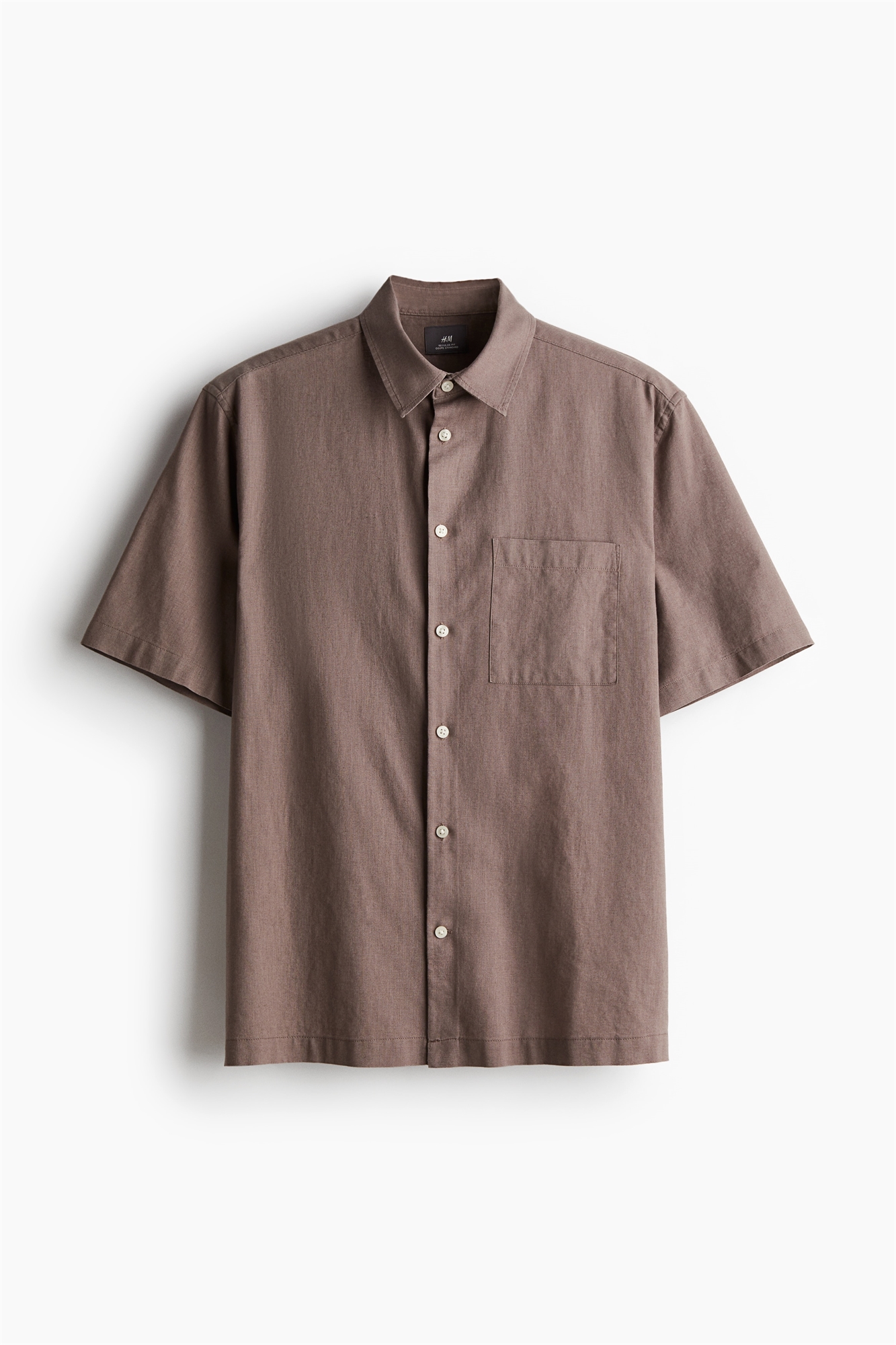 Рубашка с короткими рукавами из воздушной смеси хлопка и льна с отложным воротником, французской отделкой спереди и ярмом сзади. Открытый нагрудный карман и прямой подол. Регулярный крой для комфортного ношения и классического силуэта. Смесь хлопка и льна сочетает в себе мягкость хлопка и прочность льна, создавая красивую, текстурированную ткань, которая хорошо пропускает воздух и прекрасно драпируется.