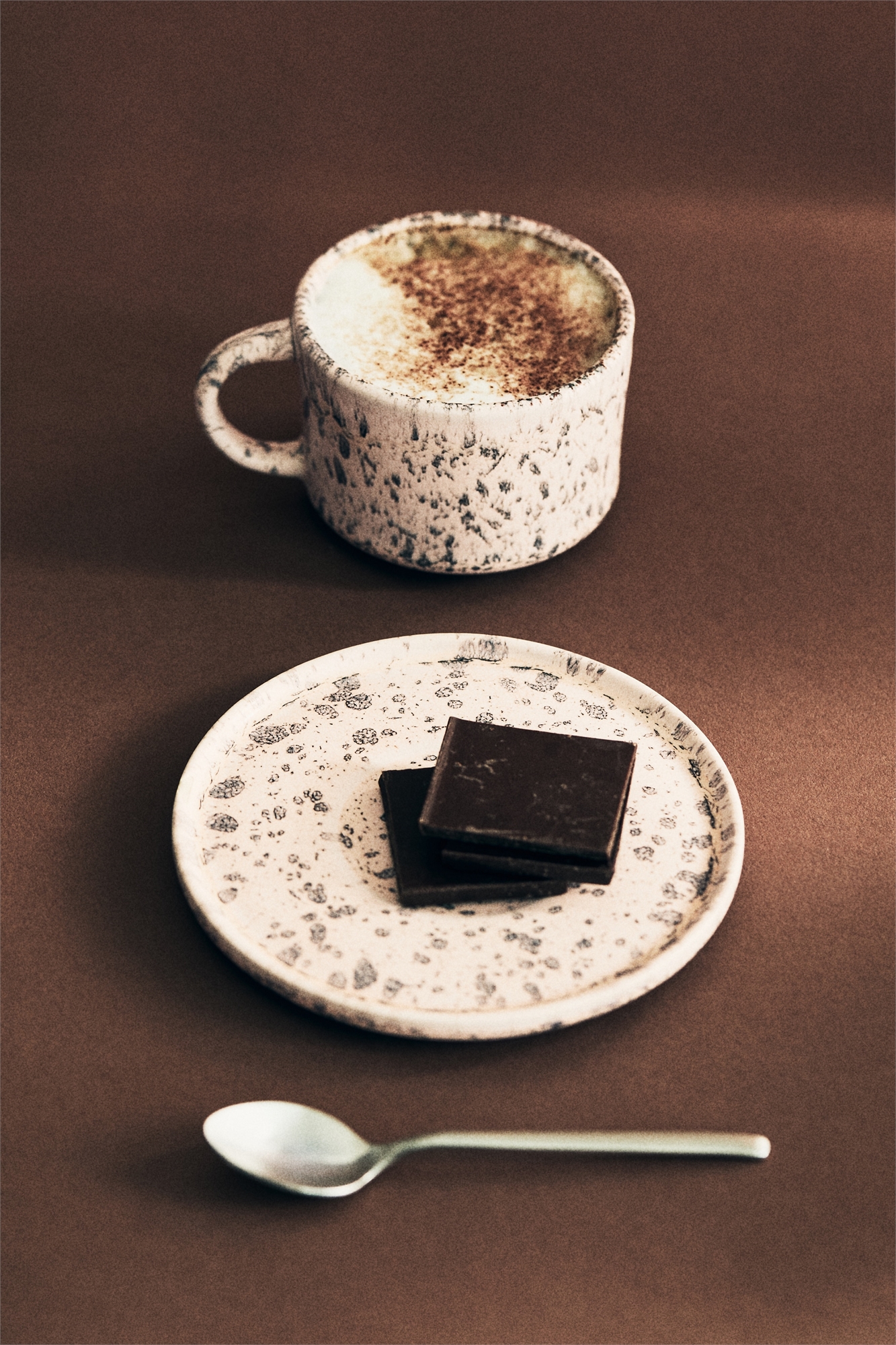Кружка и блюдце из керамогранита с реактивной глазурью, которая создает красивую пеструю окраску, придавая каждому изделию уникальный вид. Высота блюдца 1,5 см. Диаметр блюдца 13,5 см. Высота кружки 6,5 см. Диаметр кружки 8,5 см.